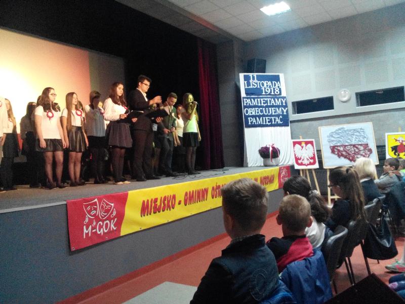 W przeddzień 97-rocznicy Odzyskania Niepodległości uczniowie naszej szkoły, tego szczególnego dnia w odświętnych strojach, udali się do Miejsko-Gminnego Ośrodka Kultury w Mordach by wziąć udział w inscenizacji patriotycznej przygotowanej przez uczniów Gimnazjum nr 1 w Mordach.