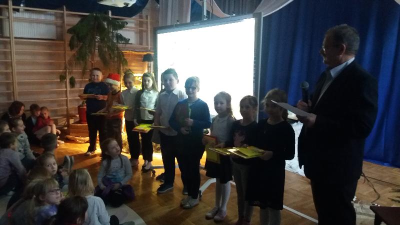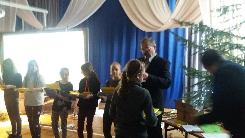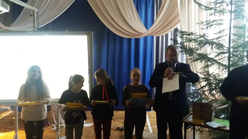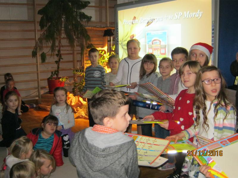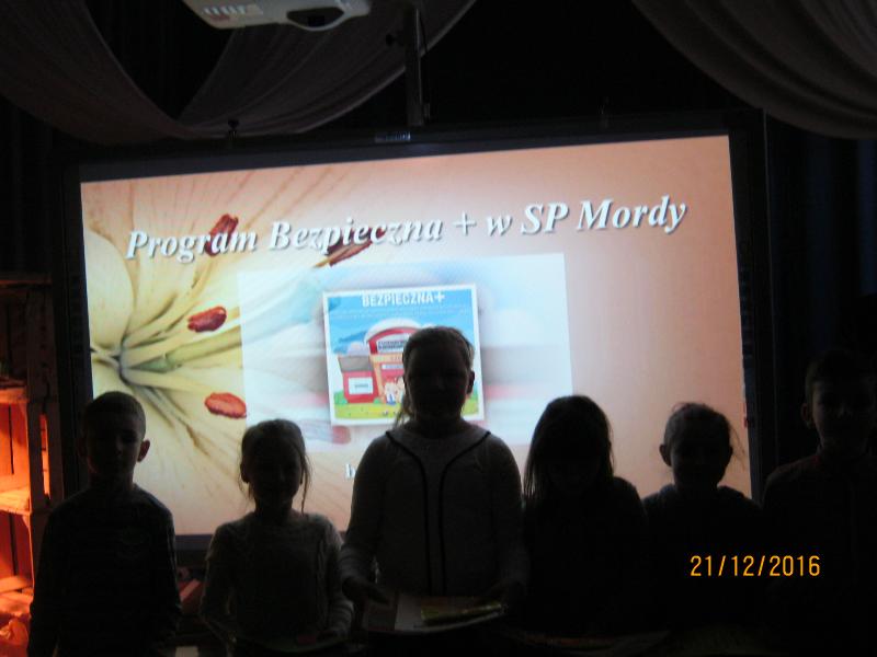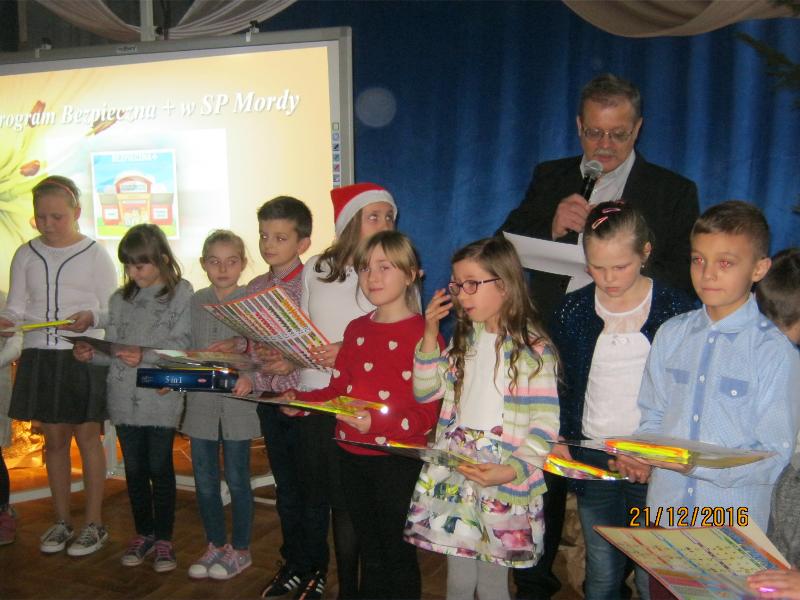 21 grudnia, w świątecznej scenerii sali gimnastycznej, podsumowaliśmy w szkole rządowy projekt „Bezpieczna+”. Projekt ten realizowaliśmy od września do grudnia. Podsumowania dokonał koordynator projektu Jerzy Borowski. Zebrani w sali obejrzeli prezentację fotograficzną. Następnie nagrodziliśmy uczniów biorących w konkursach plastycznym i multimedialnym pt. „Już jestem bezpieczny w Internecie”. Podsumowaliśmy również Wielki Test Wiedzy „Wiem, umiem i przestrzegam”. Wzięli w nim udział prawie wszyscy uczniowie szkoły. Najlepszych nagrodzono upominkami.
