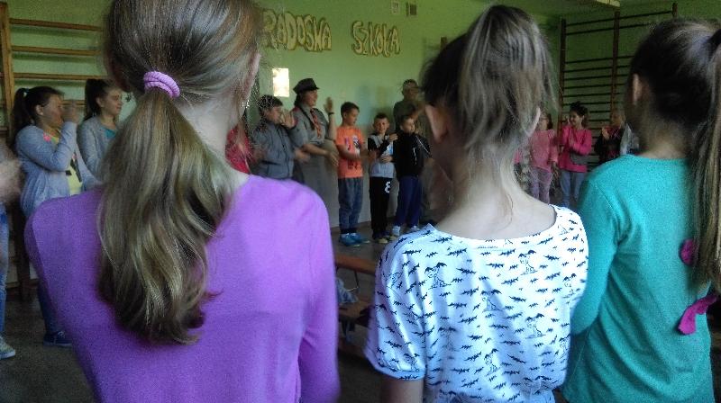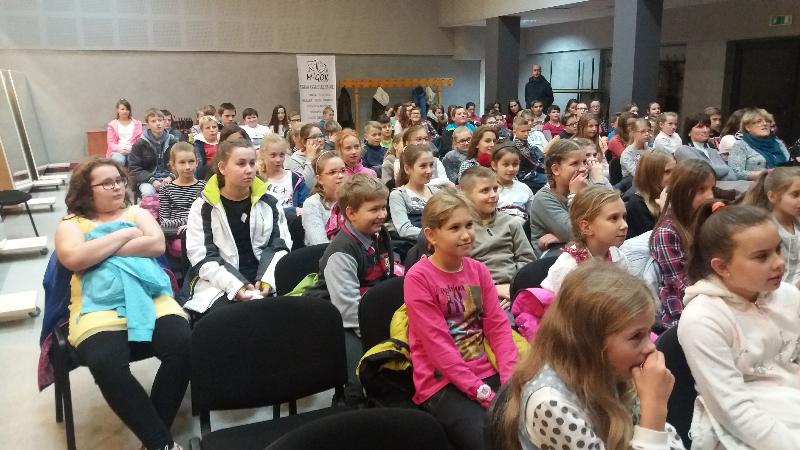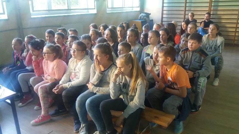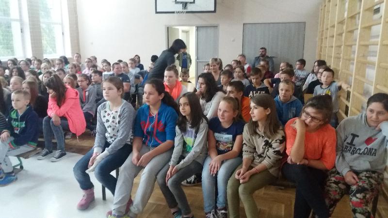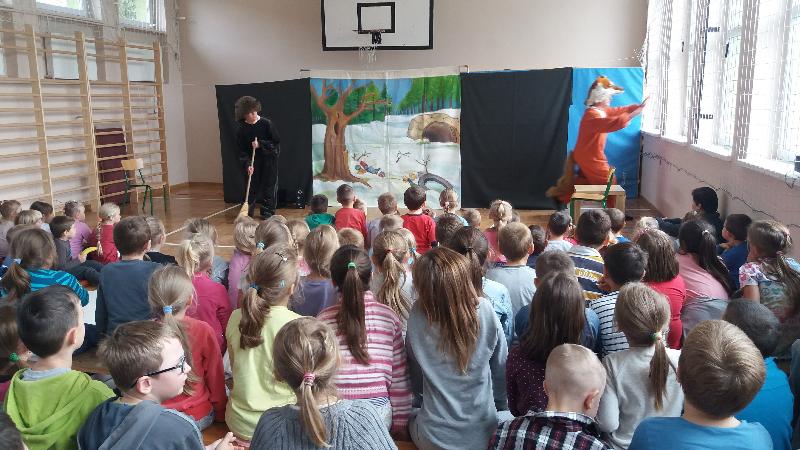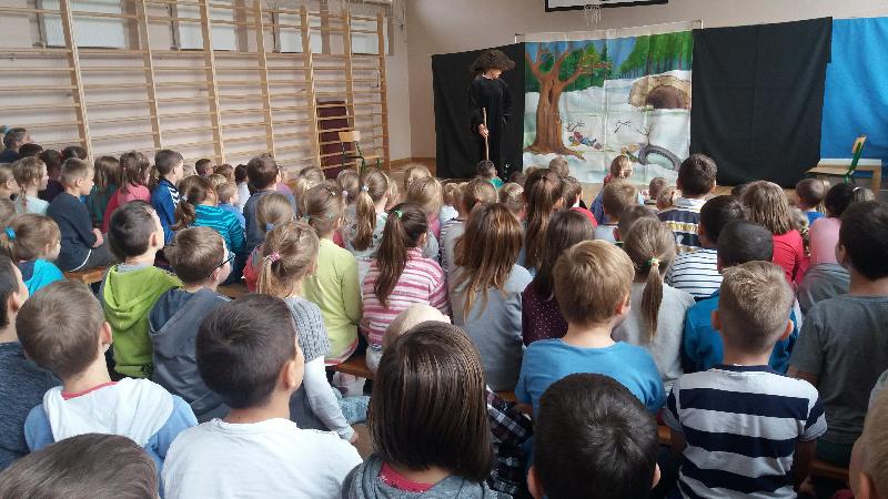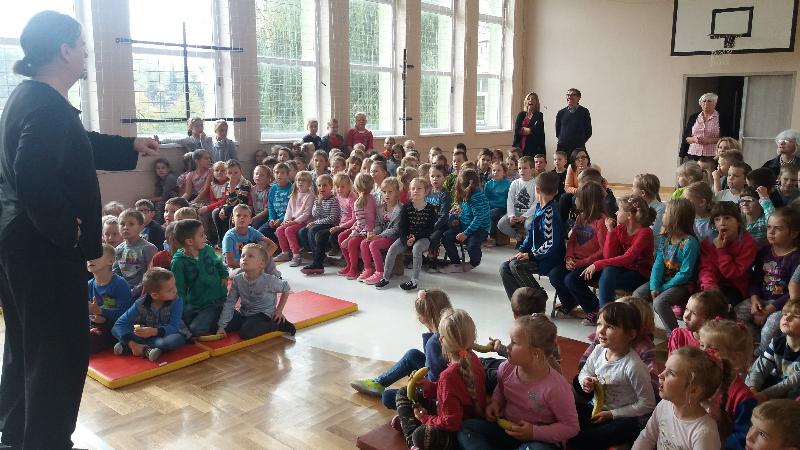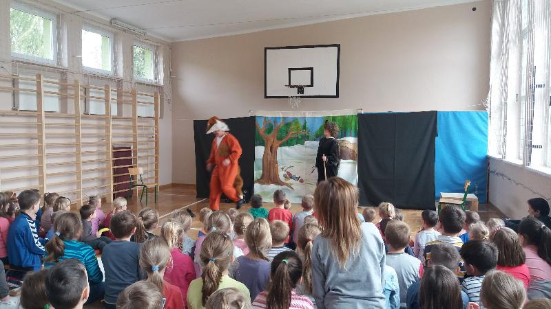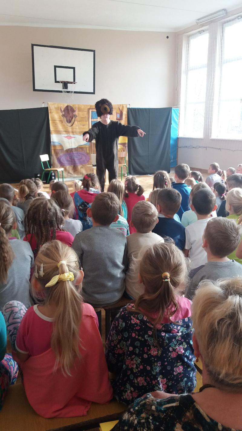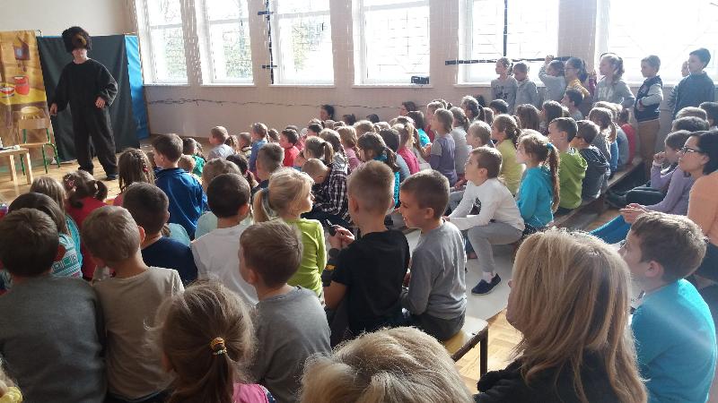 Dla uczniów klas IV-VI aktorzy przywieźli przedstawienie pt.”Bella”. Był to spektakl ukierunkowany na przeciwdziałanie agresji i przemocy (również cyberprzemocy). Widowisko ukazuje nam wielką prawdę. A mianowicie, że najczęstszą przyczyną, przez którą młody człowiek staje się agresorem jest brak zainteresowań, nieasertywna postawa życiowa, błędne przekonanie, że w dzisiejszych czasach takie właśnie zachowanie jest właściwe. Pośród przyczyn takiego stanu rzeczy m.in. pojawia się nuda. Dlatego aby powstrzymać narastanie agresji, nienawiści i nietolerancji warto zorganizować czas wolny młodzieży. Pokazać, że poza lekcjami można zajmować się sportem czy kulturą.