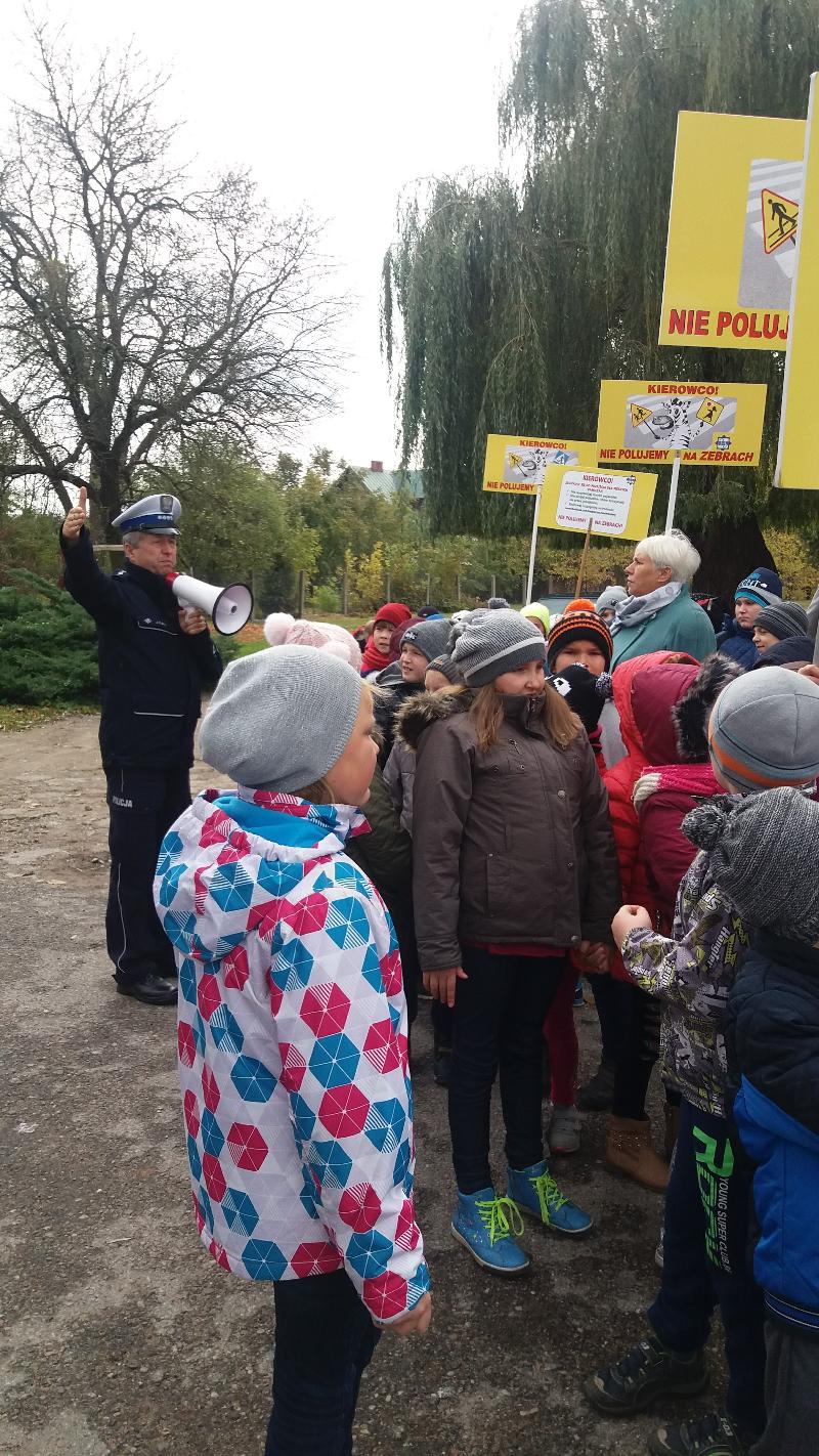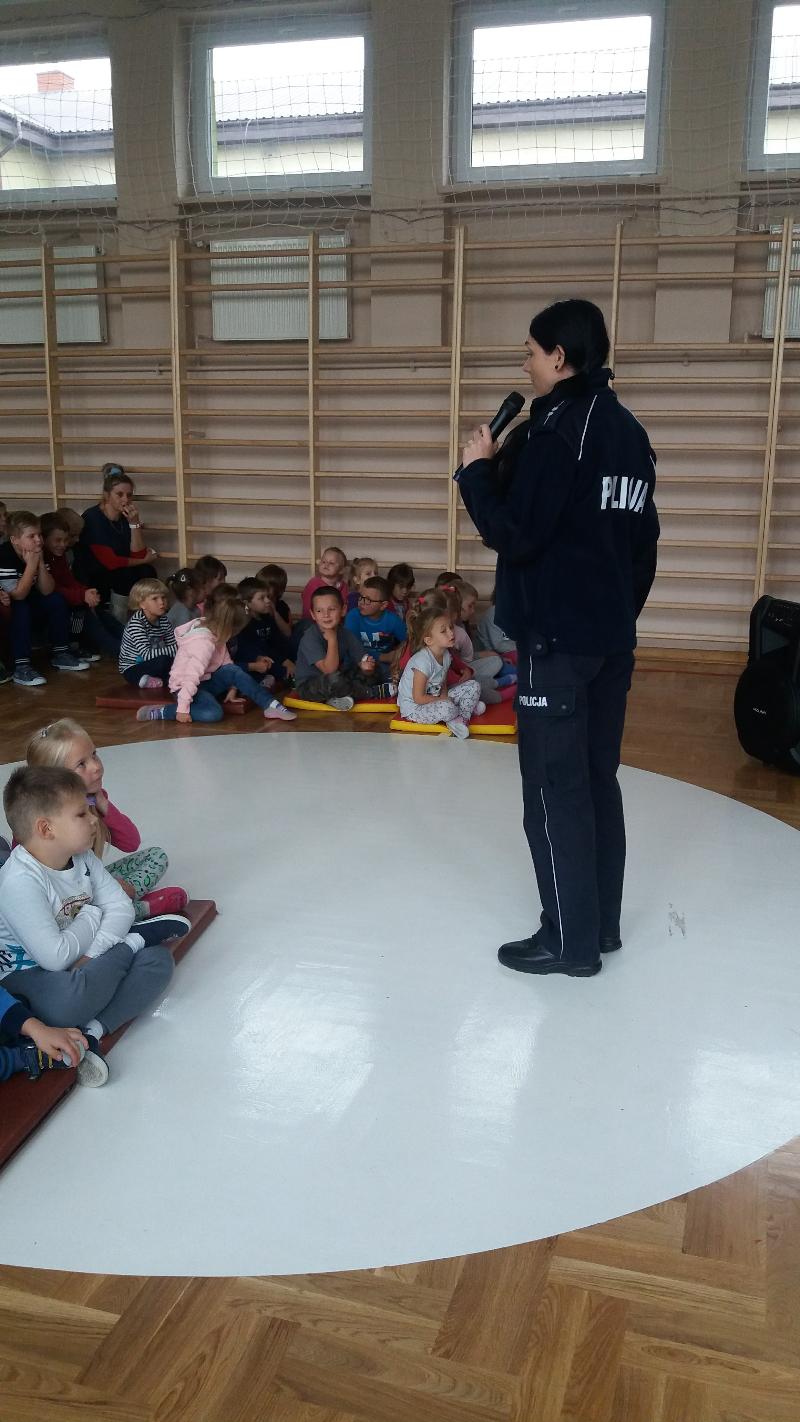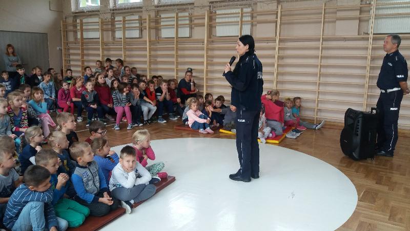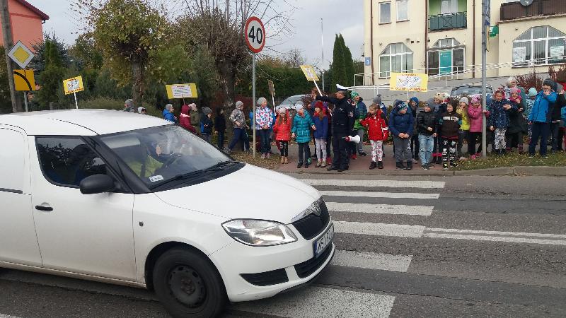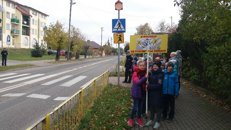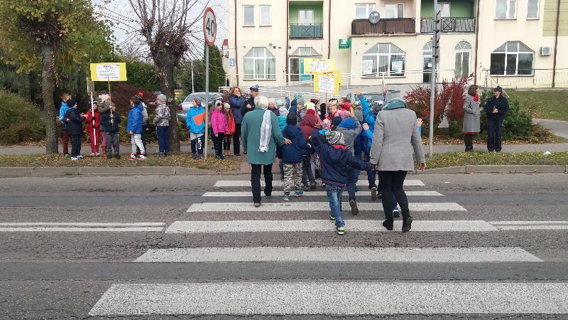 W dniu 19 października 2016 r. naszą szkołę odwiedzili policjanci z Komendy Miejskiej Policji w Siedlcach : st.asp.sztab.Janusz Cabaj i mł.asp.Edyta Barycka . Spotkanie z uczniami klas 0 –III zostało zorganizowane w ramach projektu ,,Bezpieczna +". Podczas spotkania w sali gimnastycznej dzieci poznały podstawowe zasady przechodzenia przez jezdnię i bezpiecznej drogi do szkoły. Następnie w towarzystwie policjantów wszyscy wyruszyliśmy do przejścia dla pieszych przy skrzyżowanie ulic w pobliżu szkoły, gdzie przeprowadziliśmy akcję „Kierowco – nie polujemy na zebrach!”. Spotkaliśmy się z wielką uprzejmością kierowców, którzy z uśmiechem na twarzach pozdrawiali nas ze swoich samochodów. Uczyliśmy się również przechodzenia przez jezdnię.