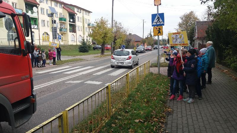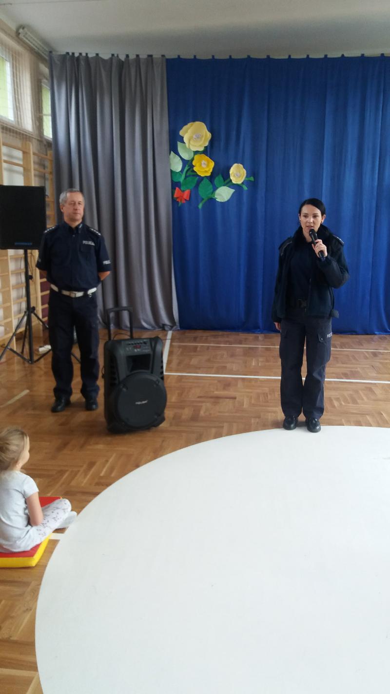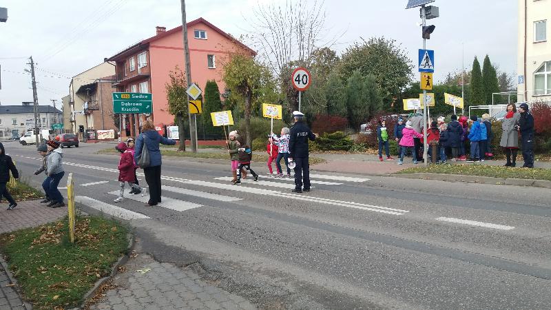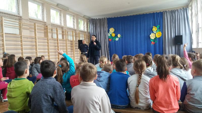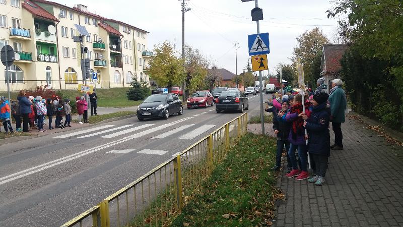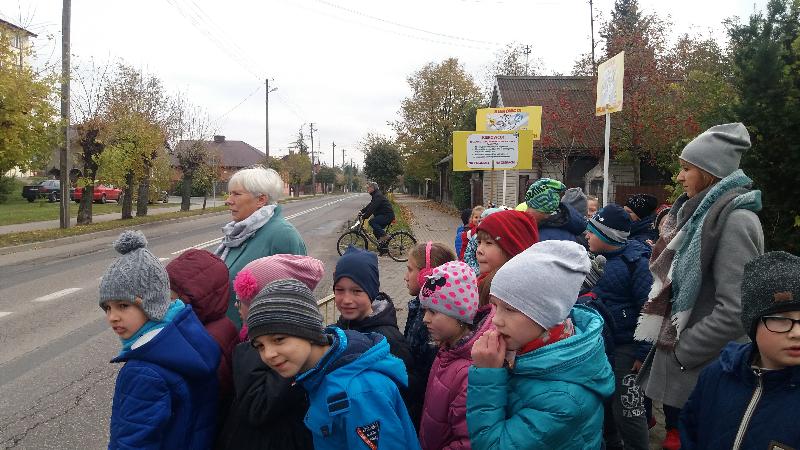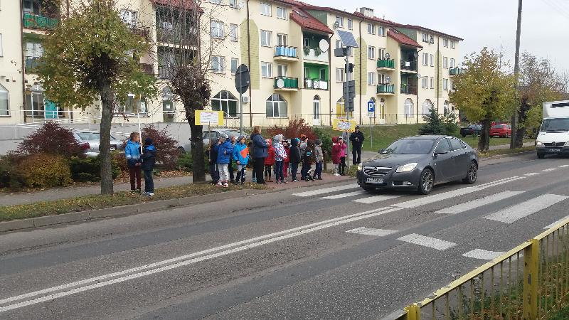 W dniu 19 października 2016 r. naszą szkołę odwiedzili policjanci z Komendy Miejskiej Policji w Siedlcach : st.asp.sztab.Janusz Cabaj i mł.asp.Edyta Barycka . Spotkanie z uczniami klas 0 –III zostało zorganizowane w ramach projektu ,,Bezpieczna +". Podczas spotkania w sali gimnastycznej dzieci poznały podstawowe zasady przechodzenia przez jezdnię i bezpiecznej drogi do szkoły. Następnie w towarzystwie policjantów wszyscy wyruszyliśmy do przejścia dla pieszych przy skrzyżowanie ulic w pobliżu szkoły, gdzie przeprowadziliśmy akcję „Kierowco – nie polujemy na zebrach!”. Spotkaliśmy się z wielką uprzejmością kierowców, którzy z uśmiechem na twarzach pozdrawiali nas ze swoich samochodów. Uczyliśmy się również przechodzenia przez jezdnię.