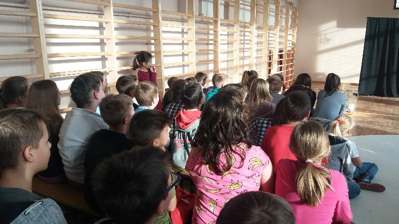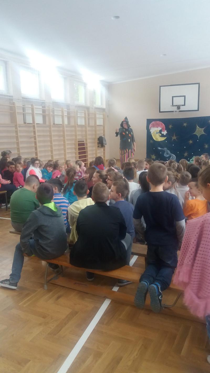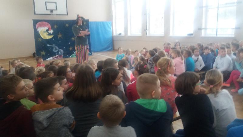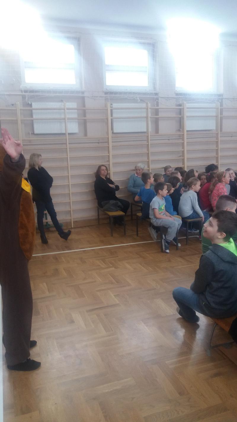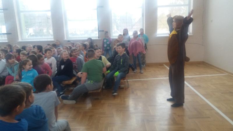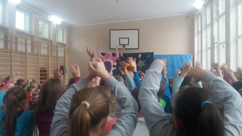 21 listopada br. dla uczniów klas IV-VI zorganizowaliśmy interaktywną profilaktyczną zabawę na temat niebezpieczeństw kryjących się w nałogach.. A zabawę tę poprowadzili aktorzy z grupy teatralnej „Echo” z Białegostoku. Z humorem opowiedzieli uczniom o tym, jak być asertywnym, jak reagować na przemoc lub też jak przemocy unikać. Program był współtworzony z dziećmi. Składał się z cyklu interaktywnych zabaw, każda traktująca o innym uzależnieniu. Poruszano problem nadużywania alkoholu, brania narkotyków, czy palenia papierosów, ale także ujawniano niebezpieczeństwa kryjące się w zwykłym domowym komputerze (gry, internet, portale społecznościowe) oraz problem przemocy fizycznej i psychicznej.