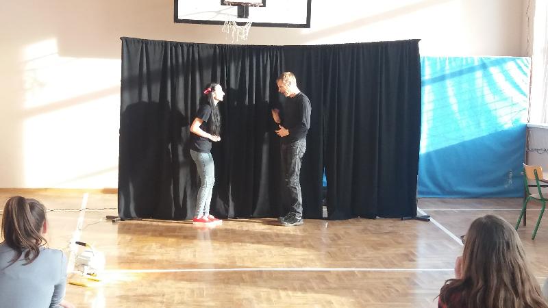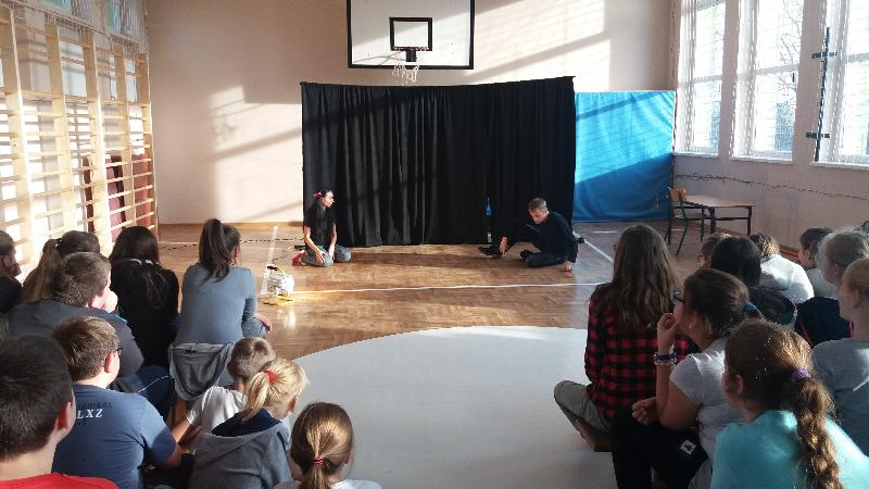 30 listopada uczniowie klas IV-VI obejrzeli spektakl profilaktyczny ukazujący skutki uzależnienia od Internetu pt. „Nick – Victoria” w wykonaniu aktorów krakowskiego Teatru Edukacji i Profilaktyki „Maska”.