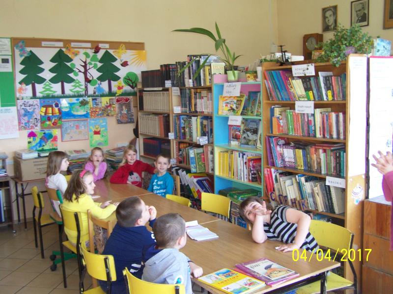 W dniu 4.04. 2017r odbyła się w bibliotece szkolnej uroczystość pasowania na czytelników uczniów klasy pierwszej. Zanim zostali jednak włączeni w poczet czytelników biblioteki szkolnej, zapoznali się z biblioteką szkolną, jej zbiorami, zasadami korzystania z biblioteki, poznali regulaminy obowiązujące w wypożyczalni, czytelni. Dzieci wypowiadały się na temat, w jaki sposób należy szanować książki i jak właściwie zachowywać się w bibliotece. Następnie uczniowie klasy pierwszej rozwiązywali zagadki bajkowe i układali z puzzli słowo bajka, a z wyciętych literek słowa: cisza i baśń. Na koniec dzieci powtarzały głośno odczytywany przez nauczyciela tekst pasowania na honorowego czytelnika biblioteki szkolnej, a następnie zostały pasowane książką i otrzymały dyplom ,, Przyjaciela książek".