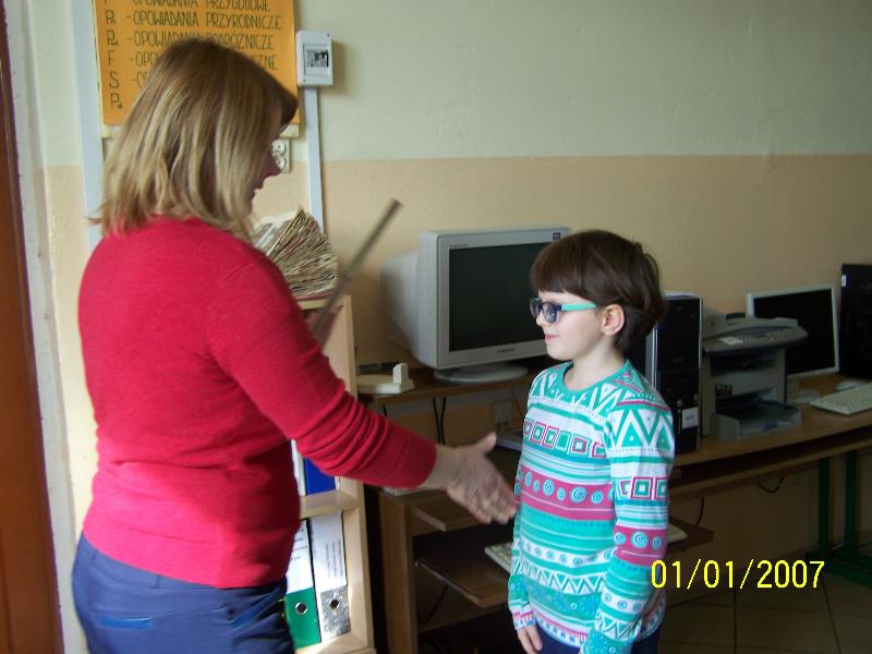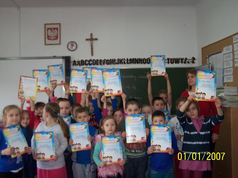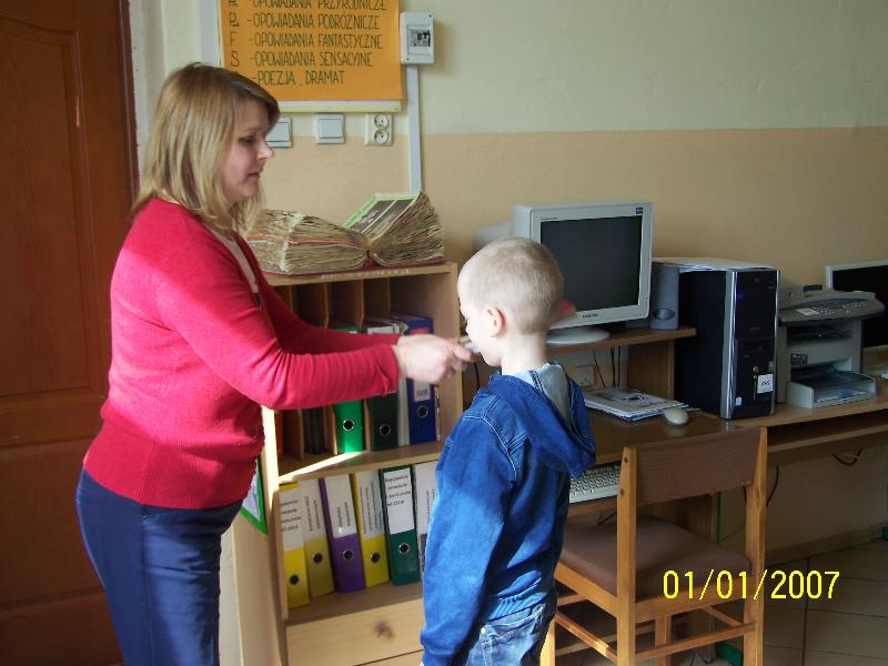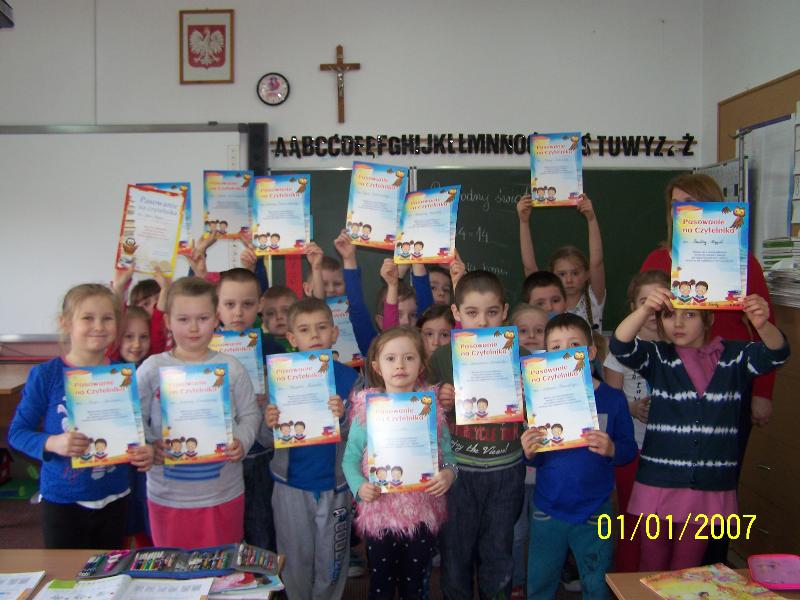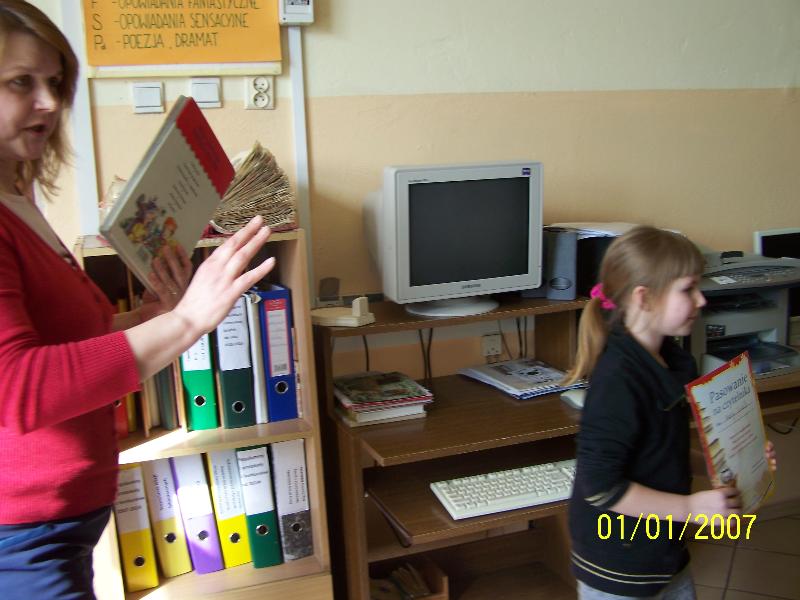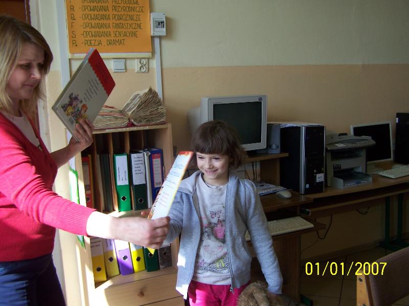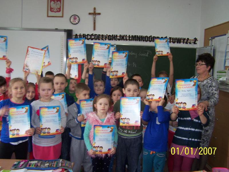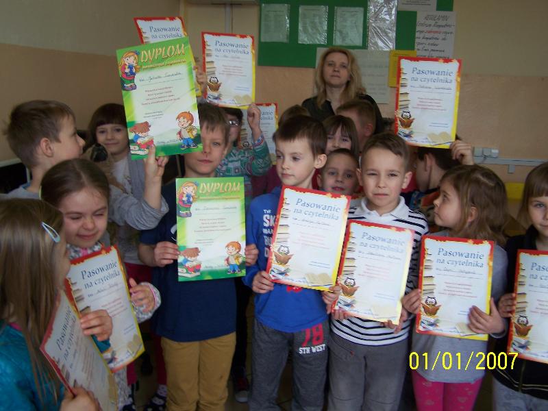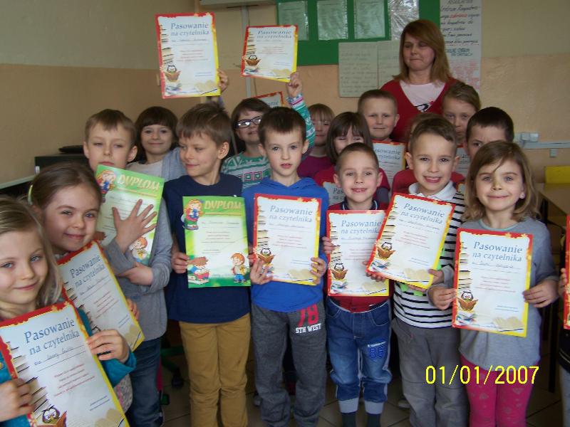 Dnia 31 marca 2016r odbyła się w bibliotece szkolnej ważna uroczystość -pasowanie na czytelnika uczniów klas pierwszych. Zanim jednak nastąpił moment złożenia przyrzeczenia przyjaciela książki i pasowania uczniowie zapoznali sie z biblioteką szkolną, wzbogacili swoje słownictwo na temat biblioteki, zapoznali się z zasadami korzystania z biblioteki oraz regulaminem wypożyczalni i czytelni. Przypomniane zostały zasady poszanowania książek, dzieci odgadywały również zagadki o znanych i lubianych bajkach. Na koniec uczniowie klas pierwszych złożyli przyrzeczenie przyjaciela książki, a następnie każdy uczeń został pasowany książką przez nauczyciela bibliotekarza i otrzymał pamiątkowy dyplom.