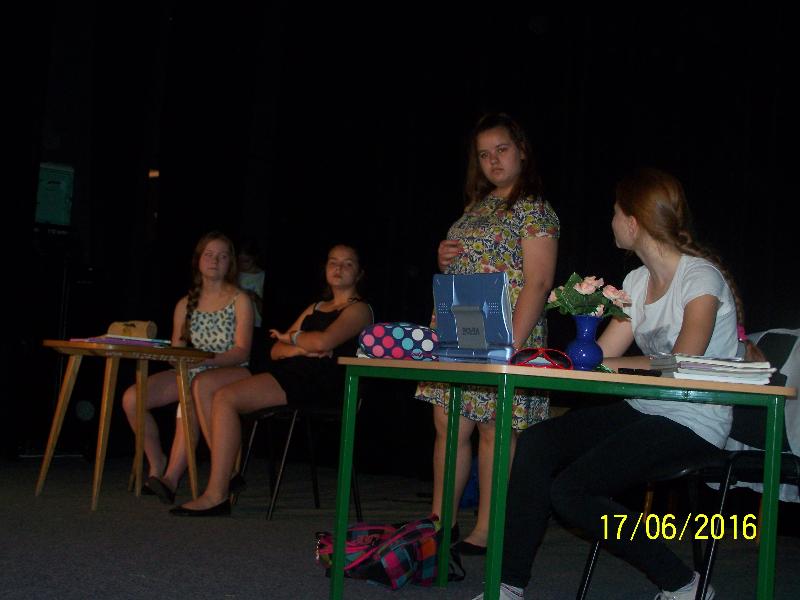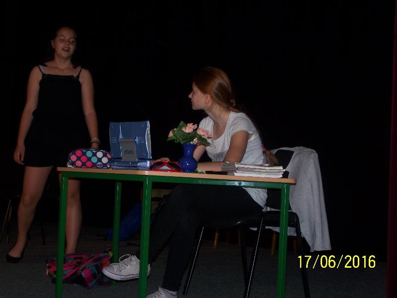 17 czerwca 2016 r. grupa teatralna uczniów klasy trzeciej „b” „ Ananasy z trzeciej klasy” wystąpiła przed starszymi uczniami z inscenizacją bajki pt. „Nie ma tego złego”.