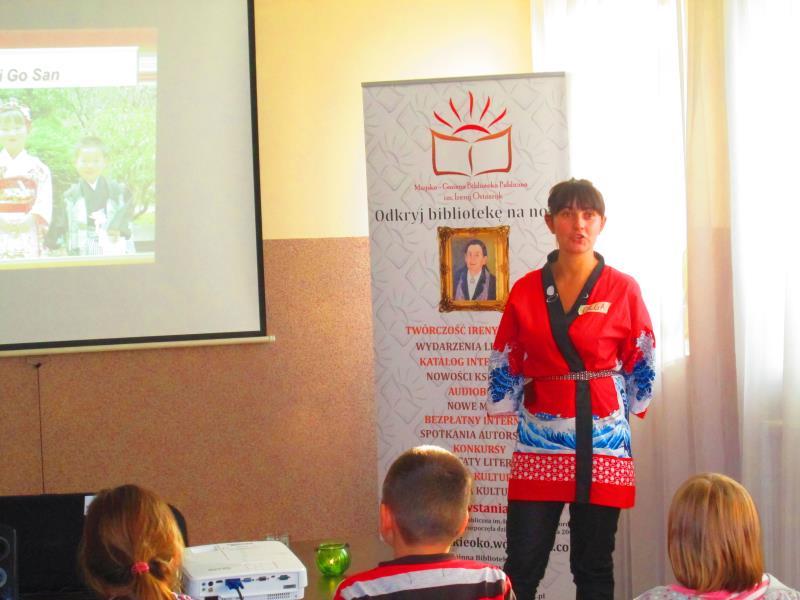 Dnia 21 listopada 2016r na zaproszenie Miejsko- Gminnej Biblioteki Publicznej w Mordach uczniowie klasy I A i II C pod opieką wychowawców p. Agaty Kesling i p. Elżbiety Wielogórskiej mieli okazję uczestniczyć w niezwykłej wyprawie do Japonii ,poznając listopadowe święto dzieci obchodzone co roku 15 listopada w Kraju Kwitnącej Wiśni. Na wyprawę zabrała je edukatorka wraz z wędrownym teatrzykiem Kamishibai, wywodzącym się z Japonii. Dzieci miały okazję poznać kulturę, obyczaje i święta obchodzone w Japonii, a także stworzyć własne ilustrowane historie inspirowane opowieścią wędrownego teatrzyku.