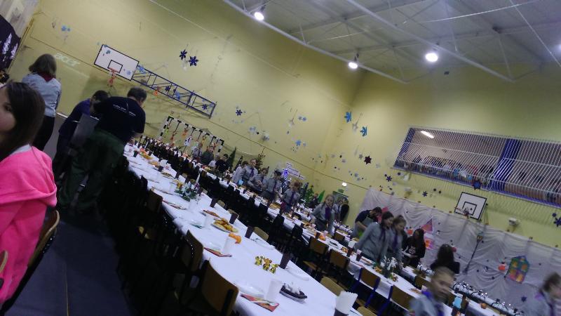 W dniach 9-10 grudnia 2016 roku zuchy i harcerze z naszej szkoły uczestniczyli w ZLOCIE BOŻONARODZENIOWYM, który odbył się w Skórcu. Pierwszego dnia uczestniczyliśmy w wykonywaniu dekoracji świątecznych oraz zabawach integracyjnych. Drugiego dnia planowana była gra terenowa ale ze względu na fatalną pogodę nasi harcerze nie wzięli w niej udziału. Po obiedzie pomagaliśmy w przygotowaniach do wigilii. Część uczestników zlotu pomagała w dekorowaniu sali gimnastycznej i nakrywaniu do stołów. O godz. 19.00 wszyscy – a było nas prawie 400 osób - zasiedliśmy do wspólnej wigilii. Mikołaj również nas odwiedził, wręczając każdemu małą Przytulankę. Długo kolędowaliśmy przy stołach i posilaliśmy się wigilijnymi potrawami. Do Mordów wróciliśmy o godz. 23.00.