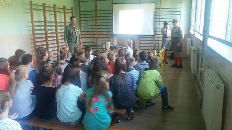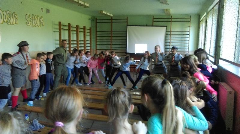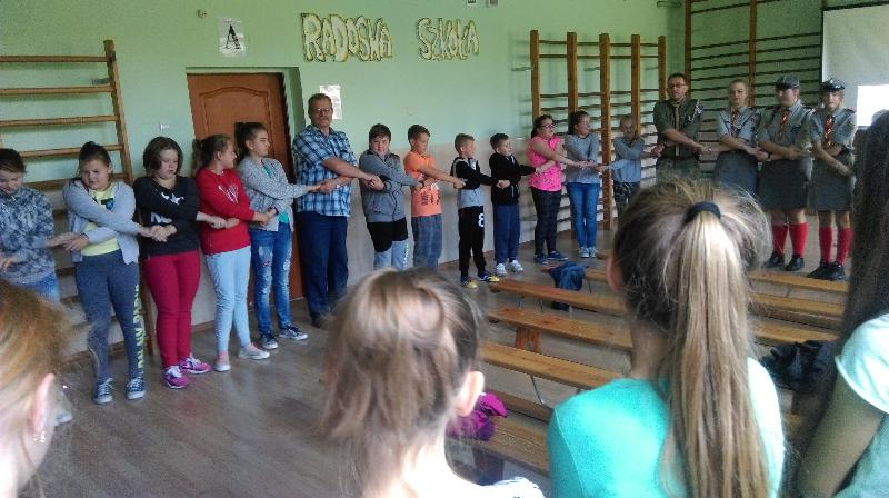 27 września br. gościli w naszej szkole harcerze z siedleckiego hufca Związku Harcerstwa Polskiego wraz ze swoim komendantem dh Zygmuntem Kondraciukiem. W ramach tego spotkania druhny i druh zapoznali uczniów z ideą ruchu harcerskiego. Uczniowie z zainteresowaniem słuchali prezentacji o działalności Hufca ZHP, zadawali liczne pytania i oglądali stroje harcerskie. Jak to u harcerzy bywa nie mogło w trakcie spotkania zabraknąć ciekawych zabaw i pląsów. Nasi uczniowie zostali "zarażeni" ideą harcerstwa i wyrazili chęć organizacji drużyny harcerskiej w naszej szkole. Kandydatom na harcerzy przedstawiono kilka podstawowych zasad, celów oraz metod działania ZHP. Chętnych jest wielu, a pierwsza zbiórka już wkrótce.