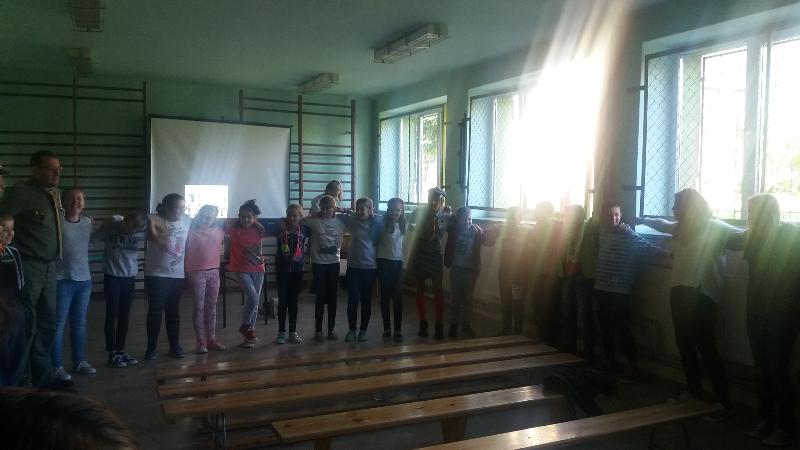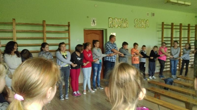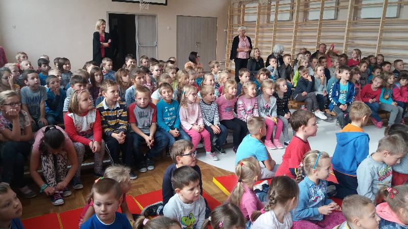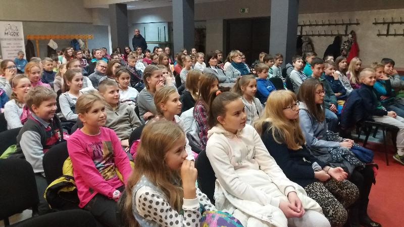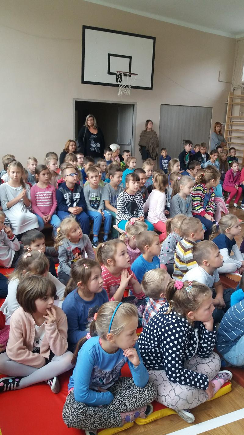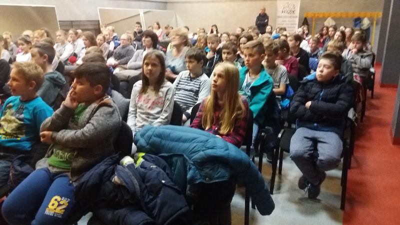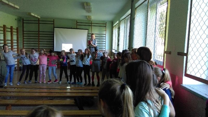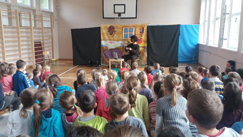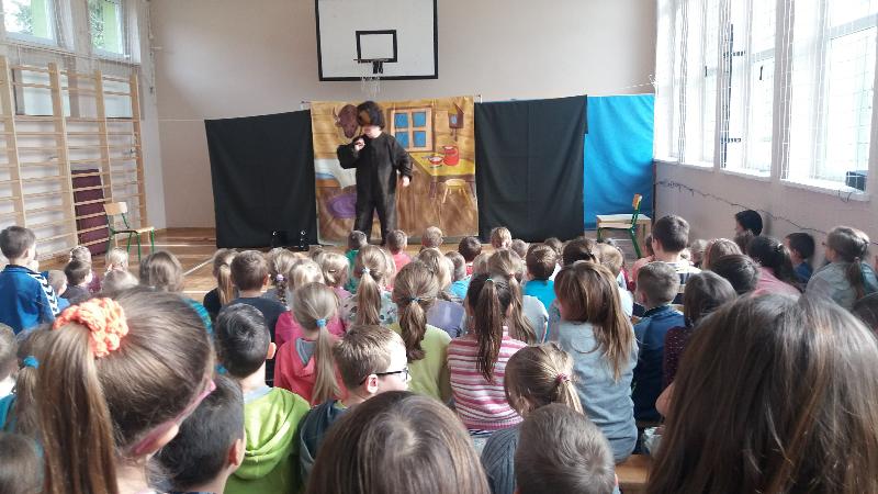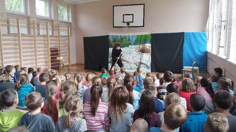 Dla uczniów klas IV-VI aktorzy przywieźli przedstawienie pt.”Bella”. Był to spektakl ukierunkowany na przeciwdziałanie agresji i przemocy (również cyberprzemocy). Widowisko ukazuje nam wielką prawdę. A mianowicie, że najczęstszą przyczyną, przez którą młody człowiek staje się agresorem jest brak zainteresowań, nieasertywna postawa życiowa, błędne przekonanie, że w dzisiejszych czasach takie właśnie zachowanie jest właściwe. Pośród przyczyn takiego stanu rzeczy m.in. pojawia się nuda. Dlatego aby powstrzymać narastanie agresji, nienawiści i nietolerancji warto zorganizować czas wolny młodzieży. Pokazać, że poza lekcjami można zajmować się sportem czy kulturą.