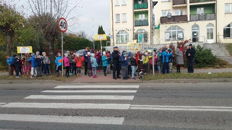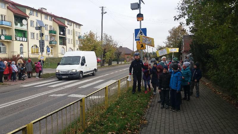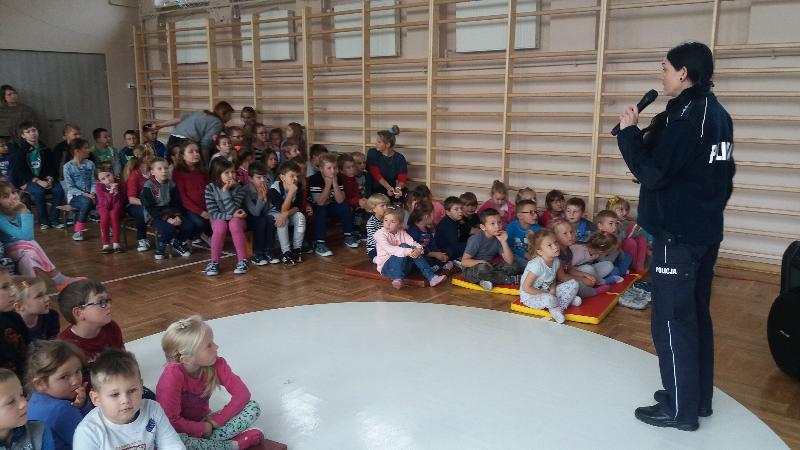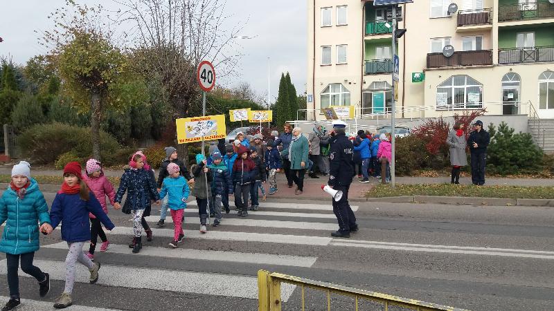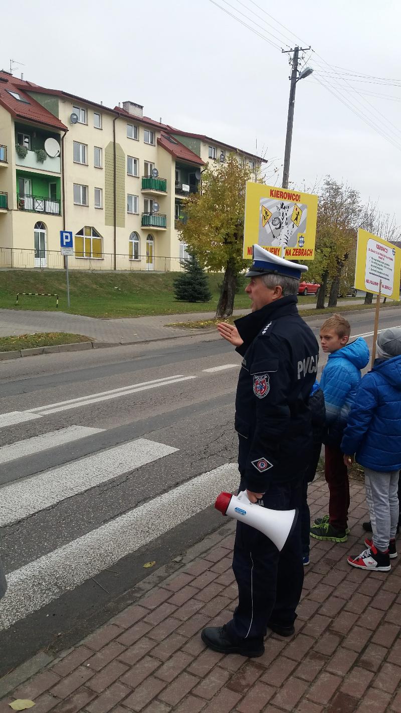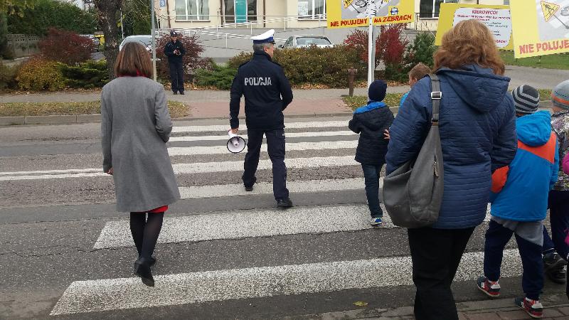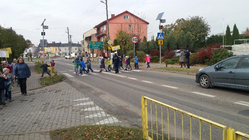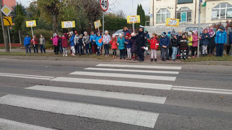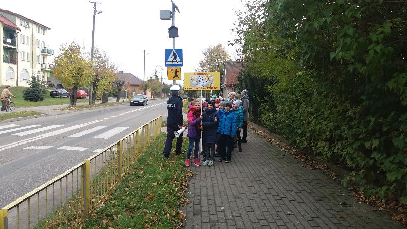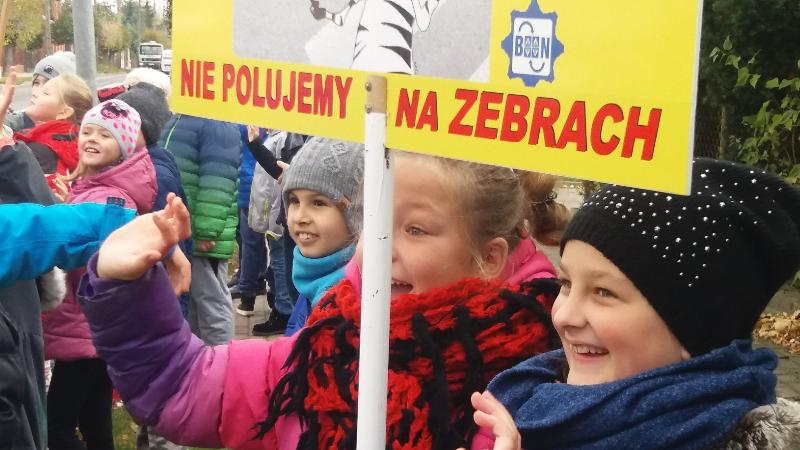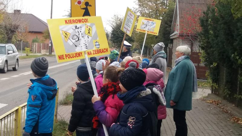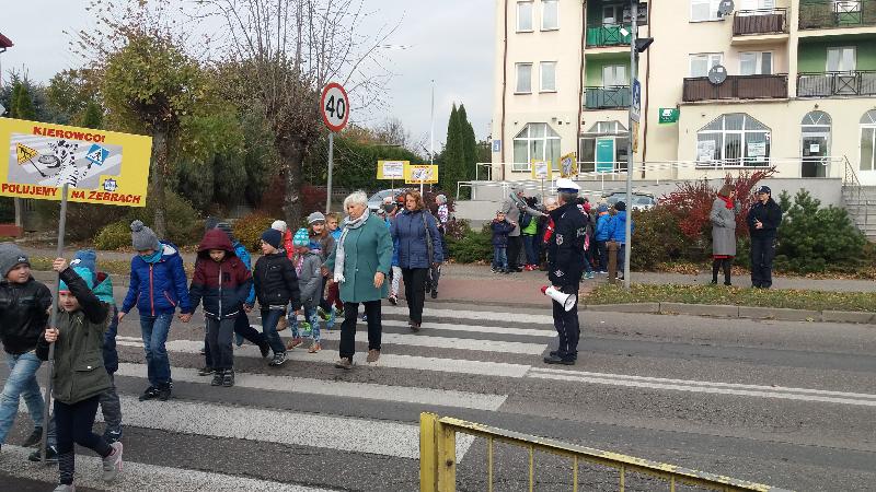 W dniu 19 października 2016 r. naszą szkołę odwiedzili policjanci z Komendy Miejskiej Policji w Siedlcach : st.asp.sztab.Janusz Cabaj i mł.asp.Edyta Barycka . Spotkanie z uczniami klas 0 –III zostało zorganizowane w ramach projektu ,,Bezpieczna +". Podczas spotkania w sali gimnastycznej dzieci poznały podstawowe zasady przechodzenia przez jezdnię i bezpiecznej drogi do szkoły. Następnie w towarzystwie policjantów wszyscy wyruszyliśmy do przejścia dla pieszych przy skrzyżowanie ulic w pobliżu szkoły, gdzie przeprowadziliśmy akcję „Kierowco – nie polujemy na zebrach!”. Spotkaliśmy się z wielką uprzejmością kierowców, którzy z uśmiechem na twarzach pozdrawiali nas ze swoich samochodów. Uczyliśmy się również przechodzenia przez jezdnię.