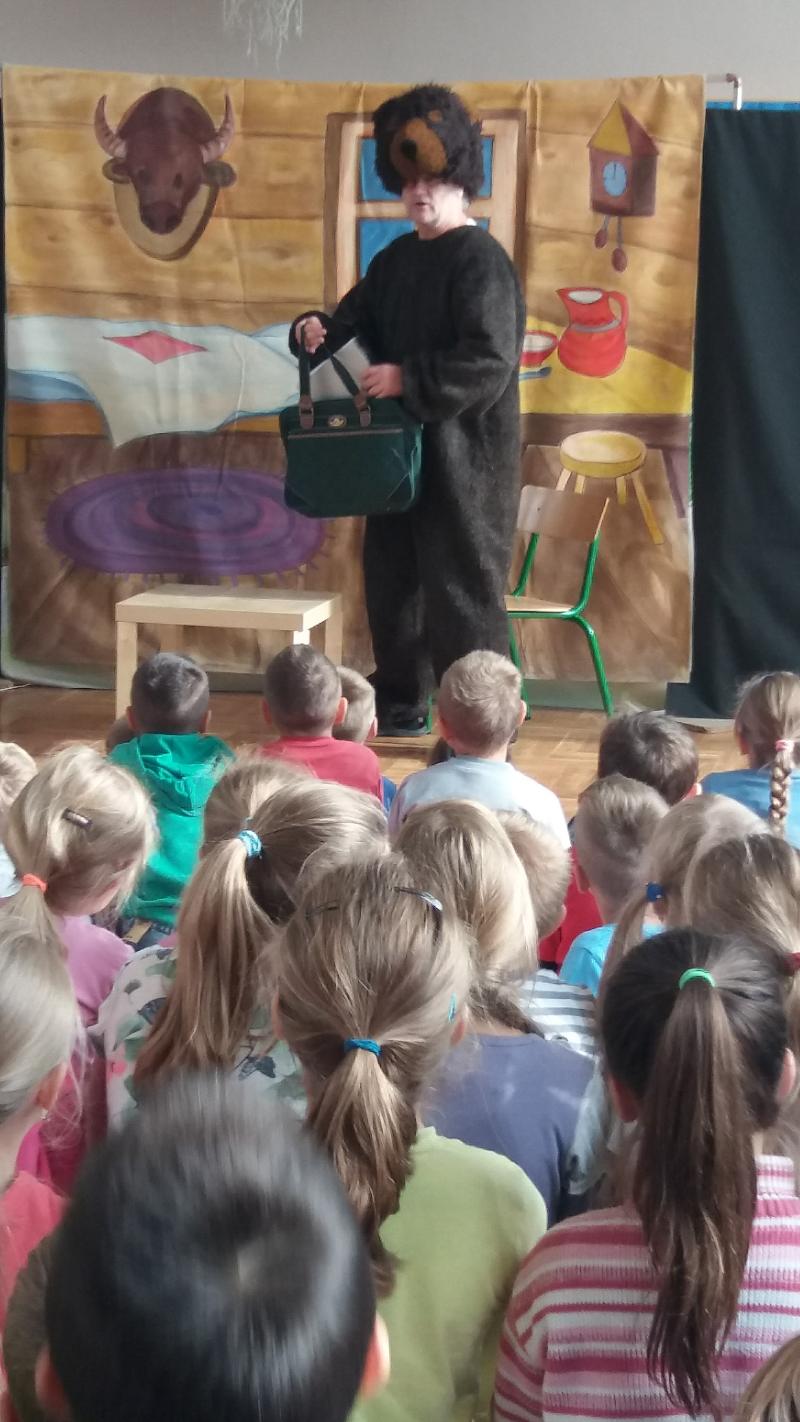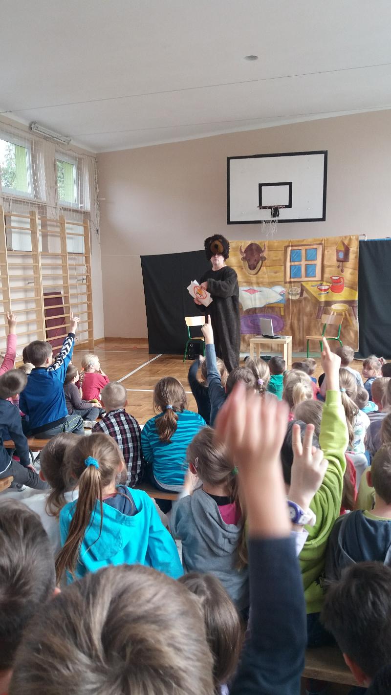 7 listopada 2016 roku gościliśmy krakowski Teatr Edukacji i Profilaktyki „Moralitet”. Uczniowie klas 0-III obejrzeli bajkę o zasadach bezpieczeństwa w szkole i poza szkołą pt.” Przygody Misia Zdzisia”. Przedstawienie opowiada o Misiu Zdzisiu, który zagubił się przebywając na wakacjach w Krakowie u swej Cioci Smoczycy. Perypetie małego bohatera są związane z różnymi niebezpieczeństwami czyhającymi na niego. Tak więc nasz Misio Zdzisio będzie miał możliwość wykazania się w trudnych, niecodziennych sytuacjach. Dzięki swej asertywności i przestrogom Cioci poradzi sobie ze Złośliwkiem, a życzliwość Krzysia pomoże mu w bezpiecznym powrocie do Cioci Smoczycy. Misio Zdzisio opowie dzieciom króciutko o mieście swej Cioci - Krakowie i przybliży legendę o Smoku Wawelskim. Opis bajki TUTAJ.