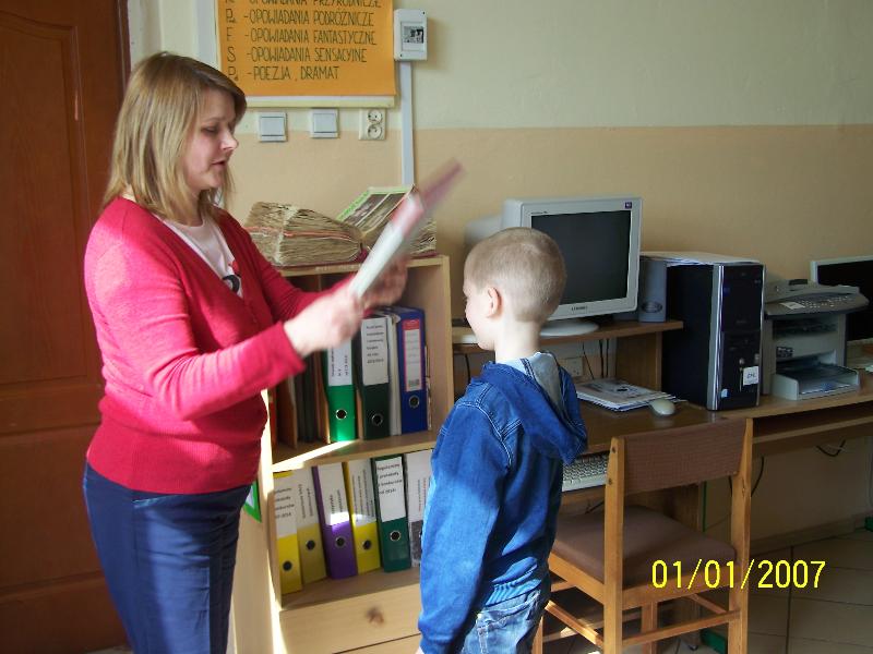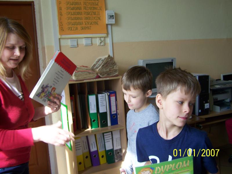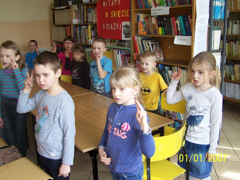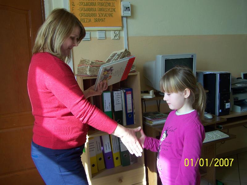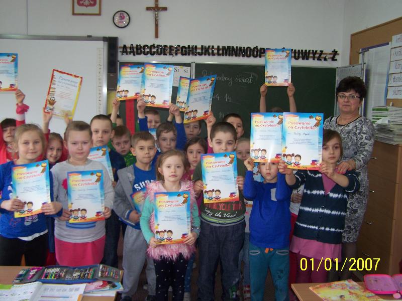 Dnia 31 marca 2016r odbyła się w bibliotece szkolnej ważna uroczystość -pasowanie na czytelnika uczniów klas pierwszych. Zanim jednak nastąpił moment złożenia przyrzeczenia przyjaciela książki i pasowania uczniowie zapoznali sie z biblioteką szkolną, wzbogacili swoje słownictwo na temat biblioteki, zapoznali się z zasadami korzystania z biblioteki oraz regulaminem wypożyczalni i czytelni. Przypomniane zostały zasady poszanowania książek, dzieci odgadywały również zagadki o znanych i lubianych bajkach. Na koniec uczniowie klas pierwszych złożyli przyrzeczenie przyjaciela książki, a następnie każdy uczeń został pasowany książką przez nauczyciela bibliotekarza i otrzymał pamiątkowy dyplom.