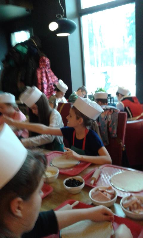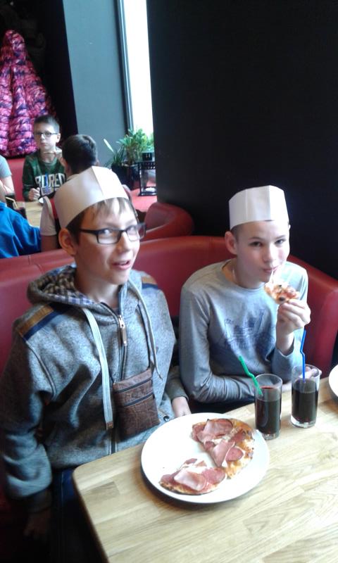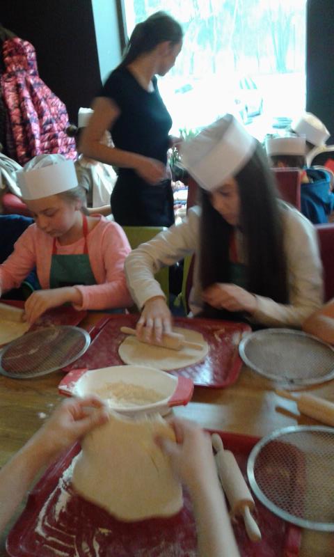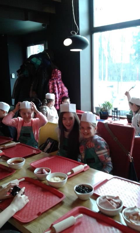 Kolejna wycieczka została zorganizowana w czasie ferii dnia 2 lutego 2016r. Bez trudu zebrała się grupa chętnych dzieci, a to za sprawą ciekawej oferty programowej. Tym razem pani Małgosia Pawłowska i pani Kasia Marczak zabrały dzieci do Warszawy na warsztaty pieczenia pizzy. Uczniowie do pracy musieli się odpowiednio przygotować. Otrzymali fartuchy, czapki, niezbędne akcesoria typu wałek oraz produkty. Po obejrzeniu krótkiego filmu instruktażowego, rozpoczęli przygotowywanie ulubionej pizzy. Upieczone przekąski zjadali z apetytem. Na zakończenie dzieci otrzymały pochwałę za bardzo dobre zachowanie. Oczywiście, to nie był koniec atrakcji. Najedzeni i pełni sił wycieczkowicze udali się na Stadion Narodowy, by podziwiać wystawę eksponatów wykonanych z klocków „Lego”. Pałac Kultury i Nauki czy „Titanic” robiły ogromne wrażenie. Uczniowie mogli wykazać się kreatywnością podczas zabawy klockami w specjalnie do tego celu wyznaczonym miejscu.