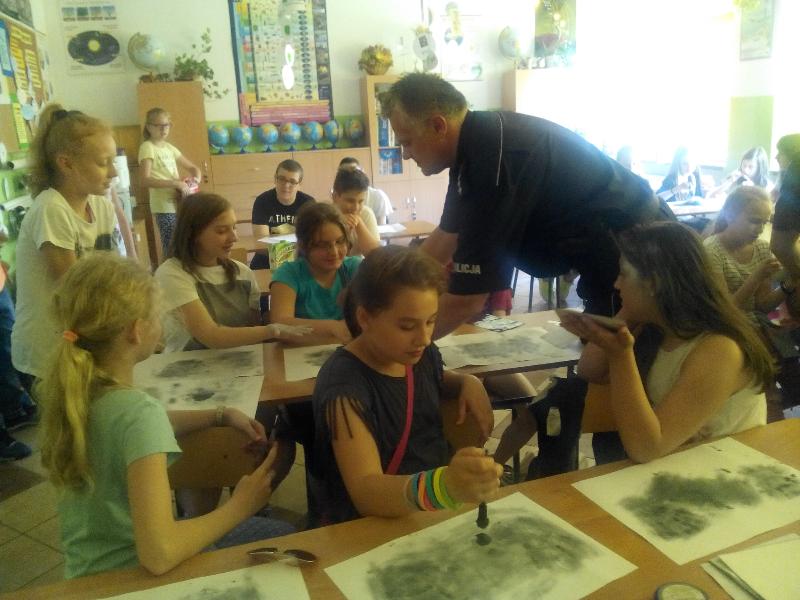 Świętowanie urozmaicił pokaz sprzętu policyjnego. Można było od strony praktycznej poznać metody zabezpieczania śladów na miejscu zdarzenia, wykrywania elementów metalowych oraz pobierania odcisków palców. Policjanci: Marek Sienkiewicz z KP Policji w Siedlcach i Krzysztof Konasiuk z Komisariatu w Mordach odpowiadali na liczne pytania uczestników. Spotkanie policjantów z dziećmi przebiegało w bardzo przyjemnej i wesołej atmosferze, co z pewnością buduje pozytywne relacje pomiędzy policja a społeczeństwem.