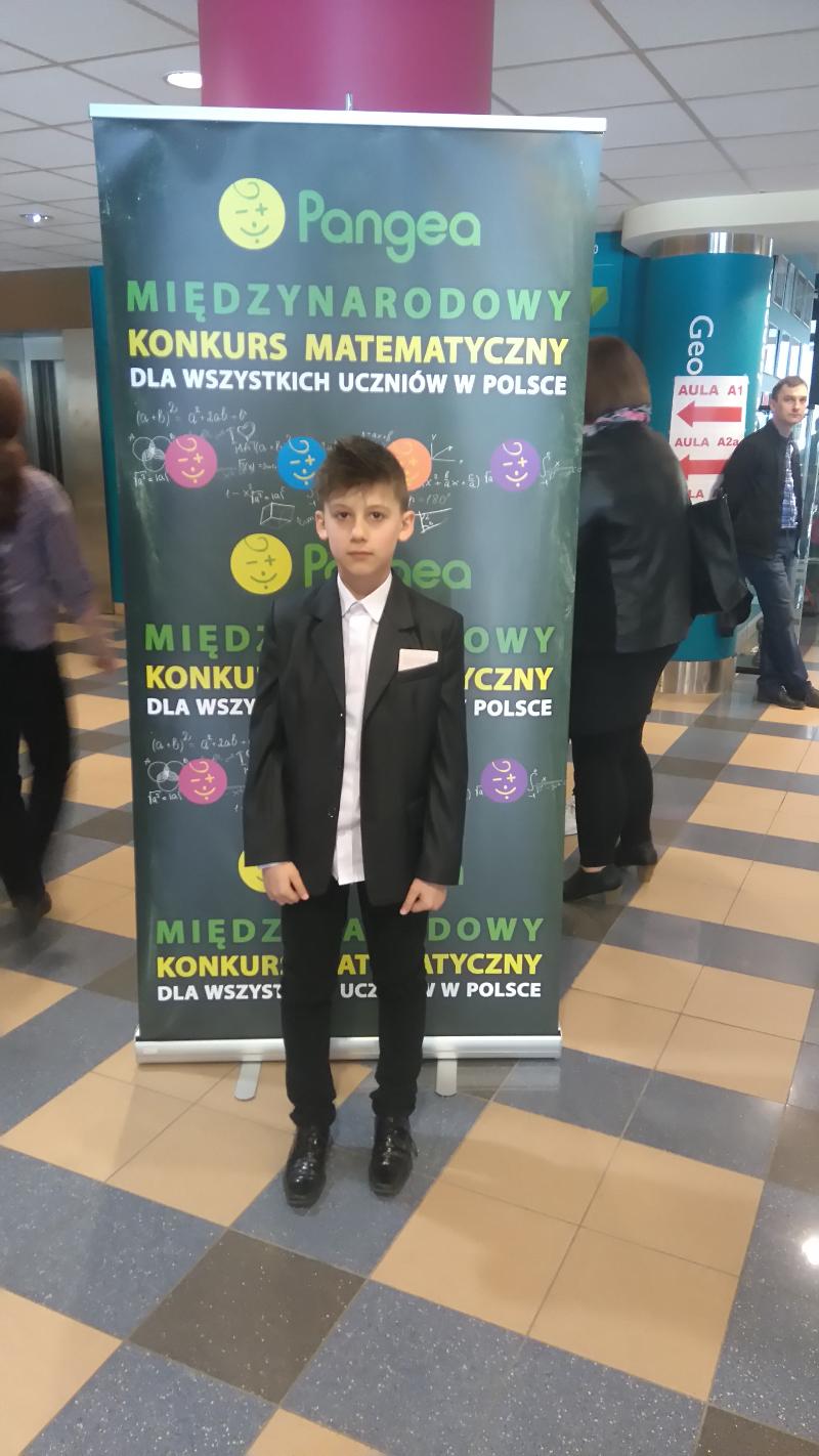 Dnia 29 kwietnia 2016 roku uczeń klasy IV Kamil Soszyński wziął udział w Finale Międzynarodowego Konkursu Matematycznego PANGEA, który odbył się w Akademii Finansów i Biznesu VISTULA w Warszawie.