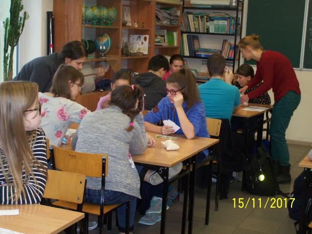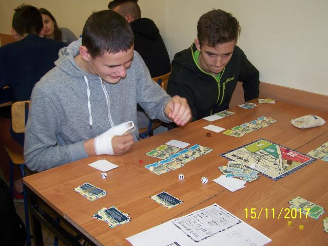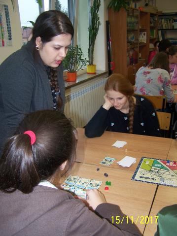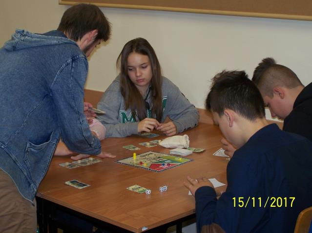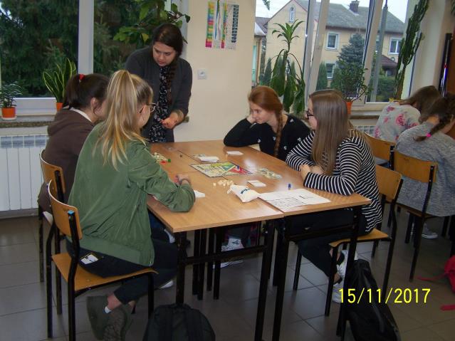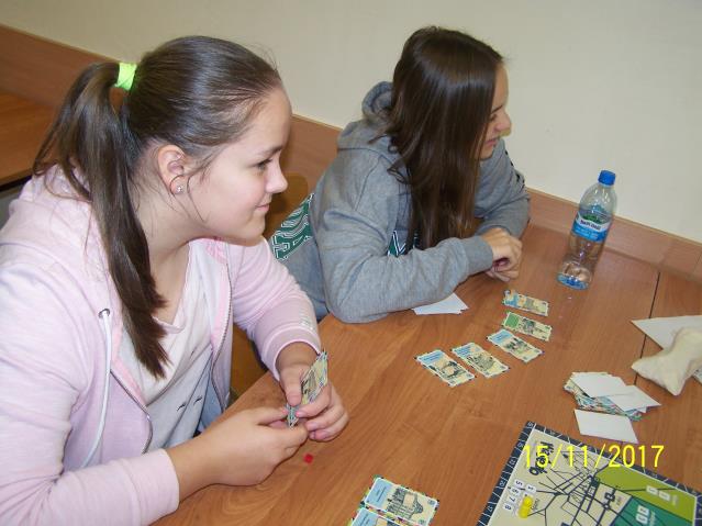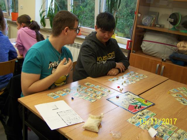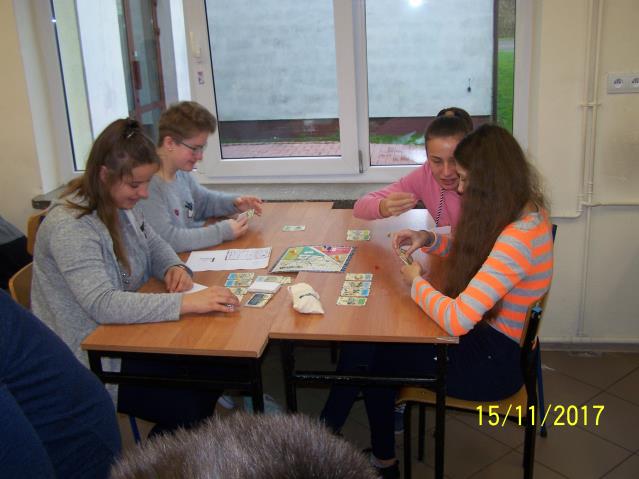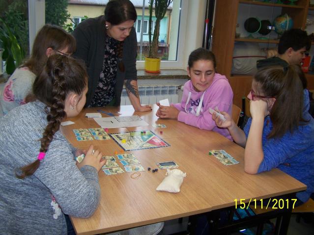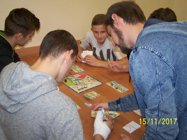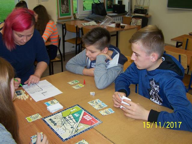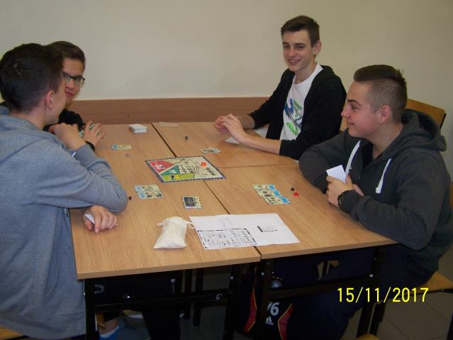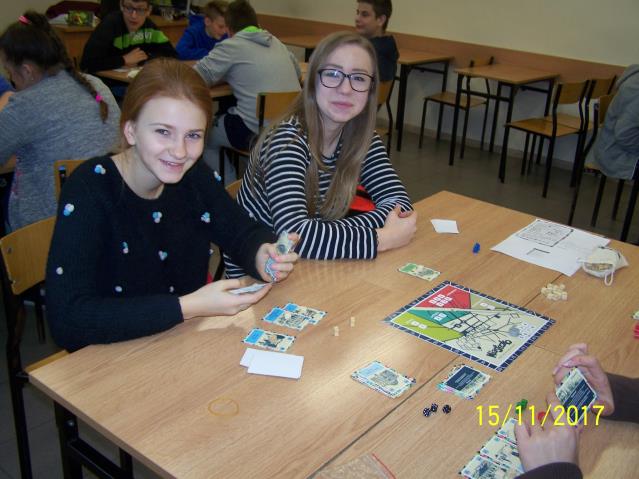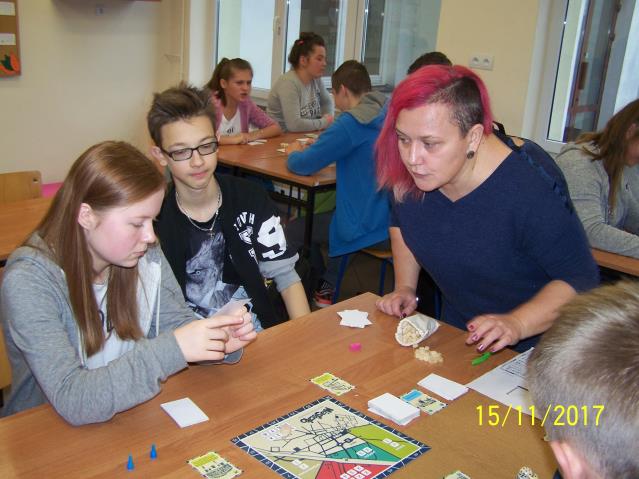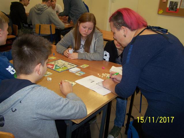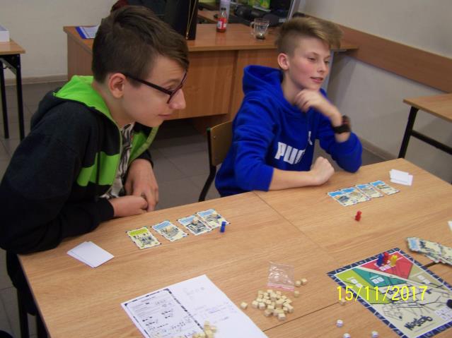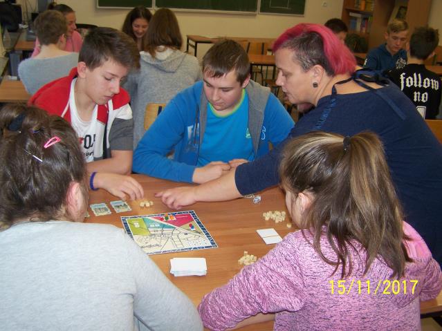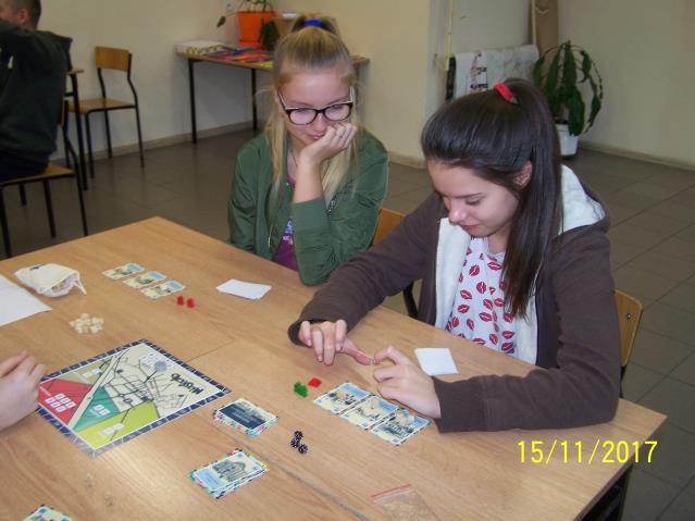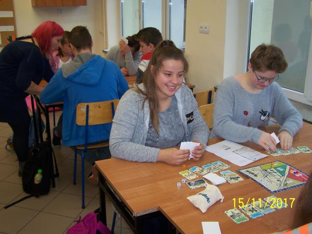 Dnia 15 listopada 2017 r. uczniowie klas VII i II gimnazjum uczestniczyli w warsztatach z wykorzystaniem gry planszowej „Miasteczko. Siedlce w XX-leciu międzywojennym”, zorganizowanych przez siedleckie stowarzyszenie „tutajteraz”. Wykorzystana na zajęciach gra jest autorskim produktem lokalnym. Uczestnicząc w zabawie uczniowie przenieśli się do Siedlec XX-lecia międzywojennego, mieli również możliwość wcielenia się w postacie znanych siedlczan. Ciekawym elementem gry były także karty 15 wydarzeń, które miały miejsce w Siedlcach w tamtych czasach. Uczniowie z entuzjazmem uczestniczyli w rozgrywkach i każdy zbierając swoje karty, zapoznał się z zamieszczonymi na nich informacjami o budynkach, których już w mieście nie ma, gdyż zostały zburzone albo zostały przebudowane. Prezentowana gra była nie tylko rywalizacją o zdobycie najszerszej strefy wpływów, ale również ciekawą lekcją lokalnej historii.