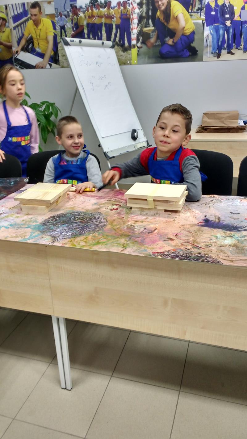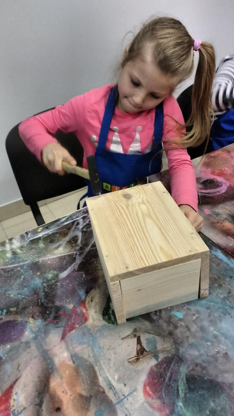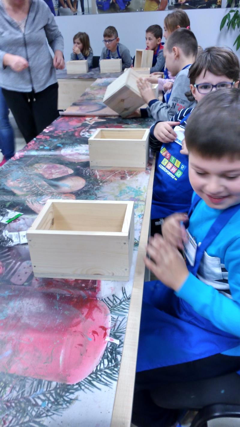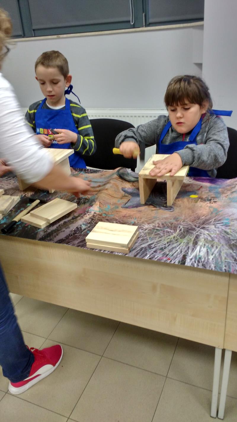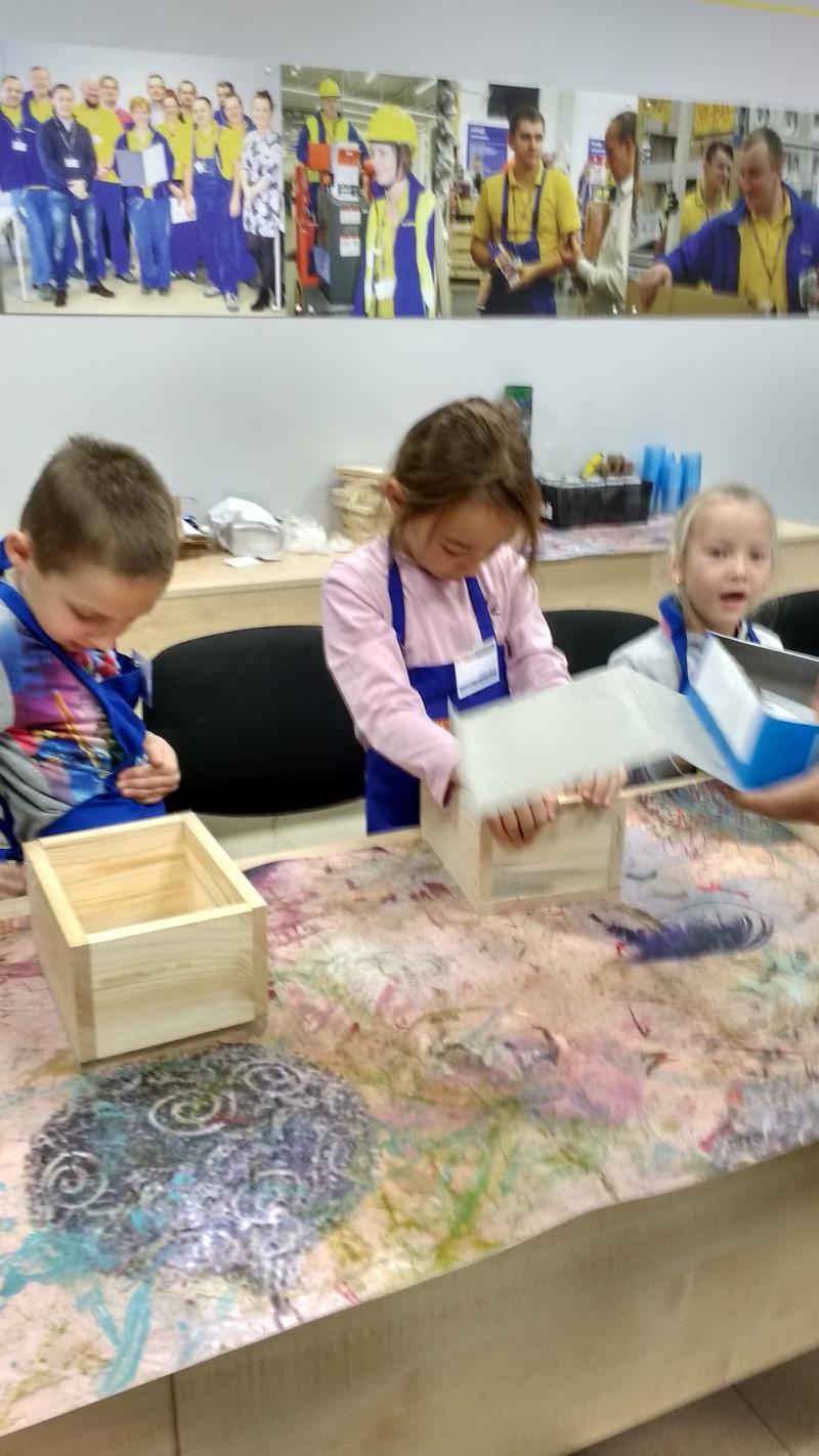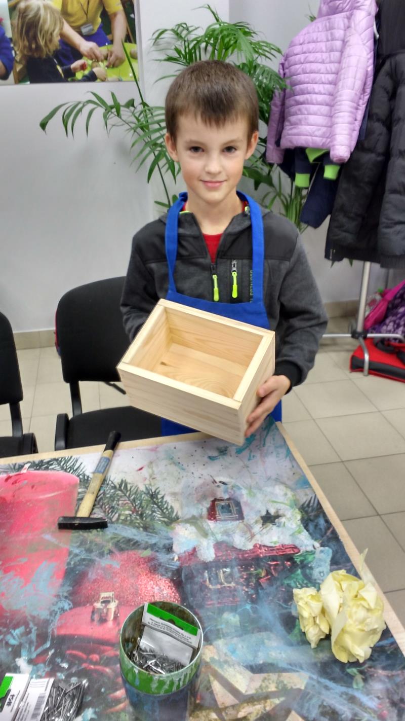 W środę 18 października uczniowie klasy II i IIIa pod opieką p. Agaty Kesling, p. Renaty Teodorczuk i p. Anety Ilczuk uczestniczyli w warsztatach „Majsterkowo” organizowanych przez Castoramę w Mińsku Mazowieckim. Głównym celem było rozbudzanie w dzieciach pasji do majsterkowania, pobudzanie wyobraźni, rozwijanie umiejętności manualnych, a także zwiększanie wiedzy i świadomości ekologicznej. Podczas zajęć poświęconych tematyce drewna, dzieci dowiedziały się, jak wygląda proces przetwarzania od momentu posadzenia drzewa, aż do sprzedaży drewnianej deski w sklepie. Z pomocą wykwalifikowanych pracowników Castoramy, uczniowie montowali „pudełka na skarby”. Najpierw w ruch poszły młotki i gwoździe. Dzieci samodzielnie zbijały i łączyły drewniane elementy. Kolejnym etapem było malowanie farbami akrylowymi i ozdabianie. Wszyscy swoje prace wykonali bardzo starannie.