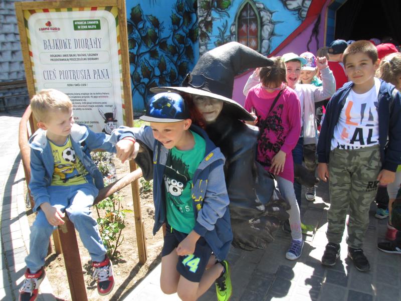 W niezwykłą podróż poza granice wyobraźni wybrały się dnia 05.06.2017roku klasy II wraz z wychowawcami : p. Jolantą Kobak, p. Elżbietą Wielogórską i p. Renatą Teodorczuk . Niezapomniane chwile czekały na dzieci w Parku Edukacji i Rozrywki „ Farma Iluzji”. Na miejscu uczniowie mogli przeżyć przygody na granicy magii i rzeczywistości, przygody, które nie tylko inspirują, ale również pozwalają miło spędzić czas na łonie natury, łącząc przyjemność odpoczynku na świeżym powietrzu z możliwością doznania niesamowitych iluzji, które na długo pozostaną w pamięci. Uwagę dzieci przykuła jedyna na świecie podniesiona na balonach Chata Tajemnic, Muzeum Iluzji, Wiklinowy labirynt. W Zakręconym Domku zobaczyli świat do góry nogami , lewitowali w Tunelu Zapomnienia, a na Zielonej Ścieżce Zdrowia wraz z brzozowymi ludkami uczestniczyli we wspólnych ćwiczeniach. Jednak największą atrakcją cieszyło się Pole Dmuchańców. Chcąc zachować wspomnienia o niezwykłym miejscu dzieci zakupiły magiczne przedmioty, które przywiodły ich do świata realnego- domu.
