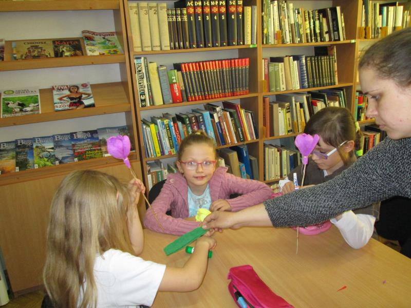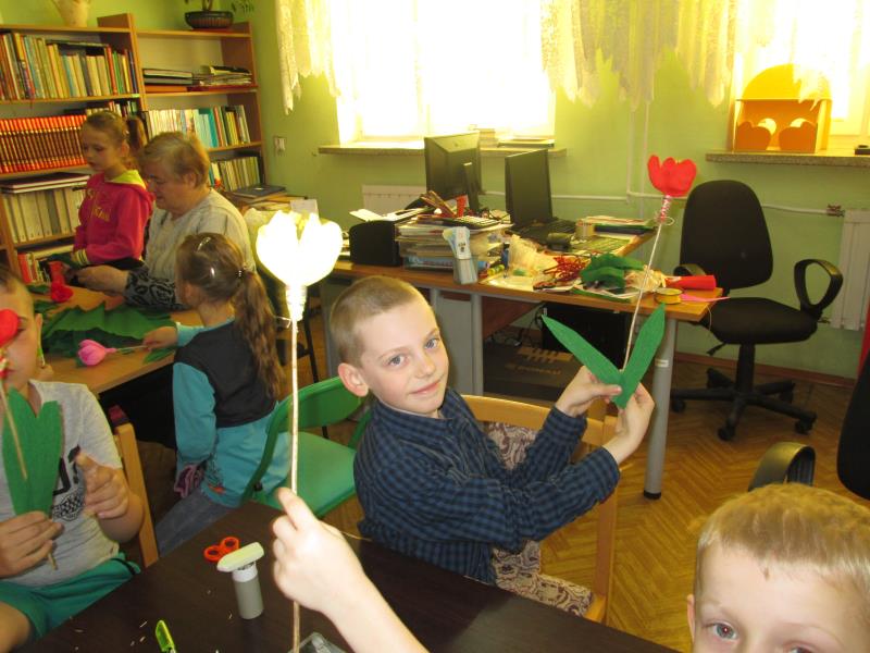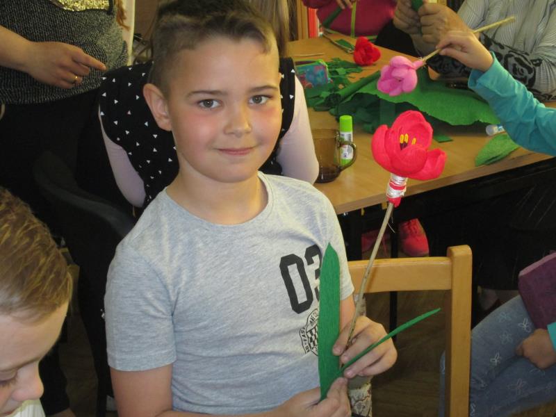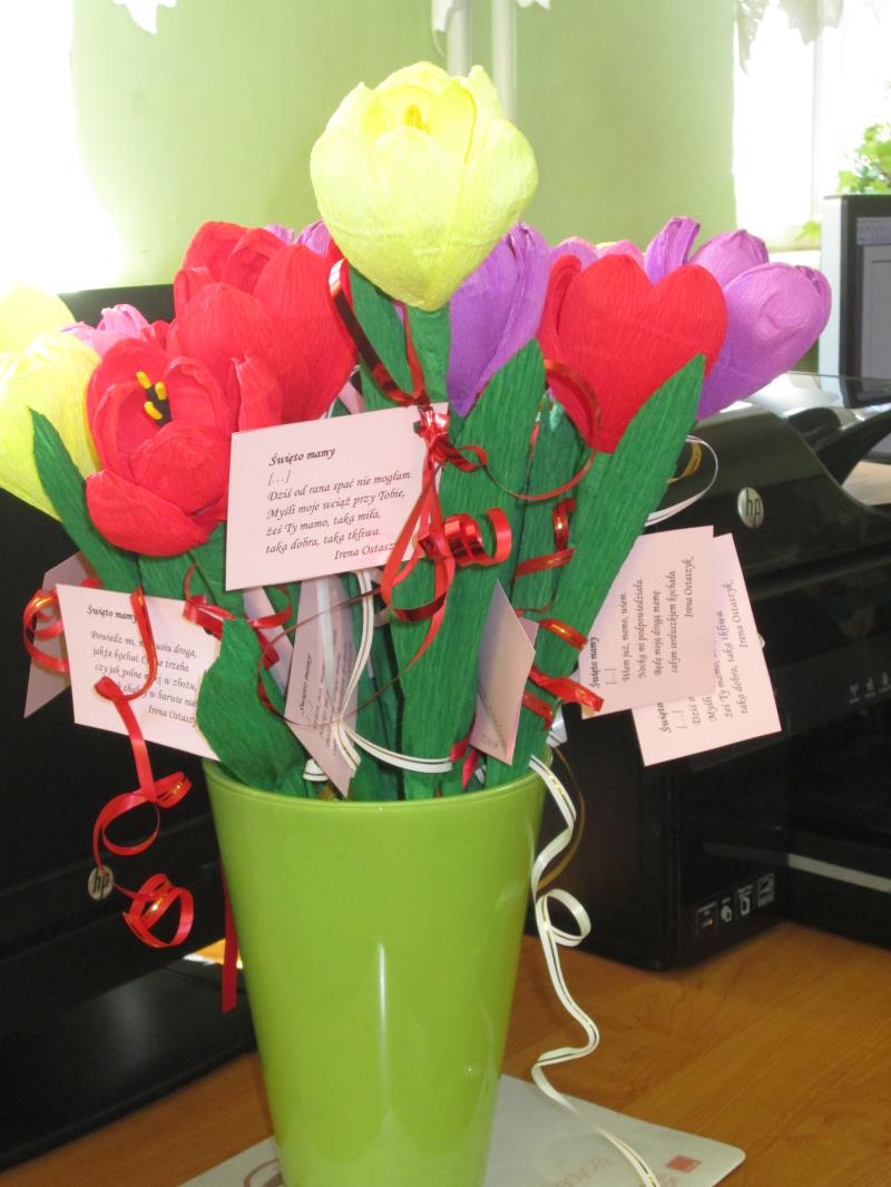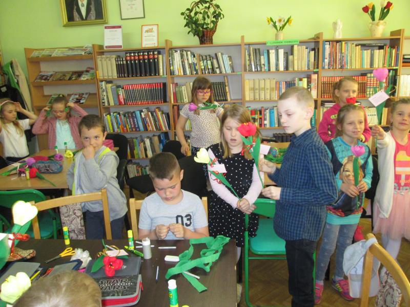 Jest taki jeden dzień w roku przeznaczony tylko dla mam, kiedy to zarówno duże jak i małe dzieci spieszą z bukietami kwiatów. Dobrym pomysłem na prezent może być zastąpienie tradycyjnego bukietu- kwiatami wykonanymi z bibuły. Dnia 17.05.2017r. uczniowie klasy II C wraz z wychowawcą p. Elżbietą Wielogórską postanowili skorzystać z gościnności Miejsko- Gminnej Biblioteki Publicznej w Mordach, by po raz kolejny uczestniczyć w warsztatach sztuki ludowej z panią Krystyną Noszczak. Pani Krystyny Noszczak jest twórcą ludowym i miłośnikiem kwiatów wykonywanych z papieru i bibuły. Chętnie dzieli się swoją pasją i umiejętnościami na rozmaitych warsztatach i zajęciach z dziećmi i młodzieżą. Zaletą Jej papierowych kwiatów jest to, że „ kwitną” cały rok i wprowadzają słoneczny nastrój nawet w pochmurne dni. Pod kierunkiem tak wspaniałej artystki dzieci wykonały własne kwiaty - zachwycające swoją unikalnością. Wręczone z miłością, w Dniu Święta Mamy , będą miłym dodatkiem do życzeń.
