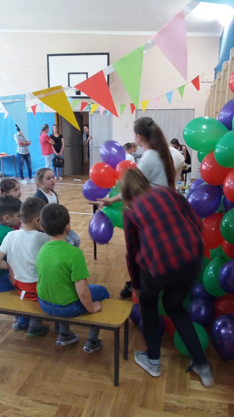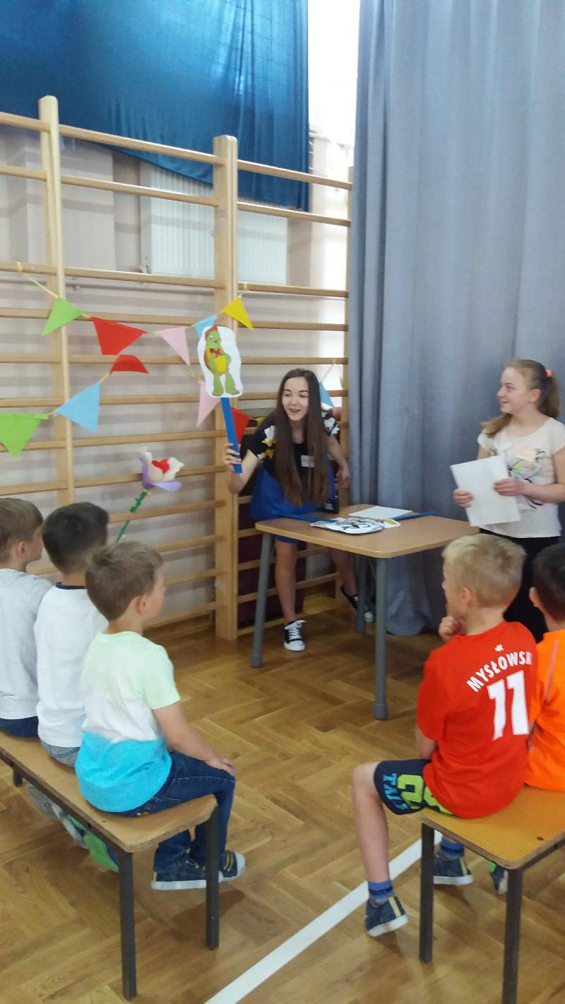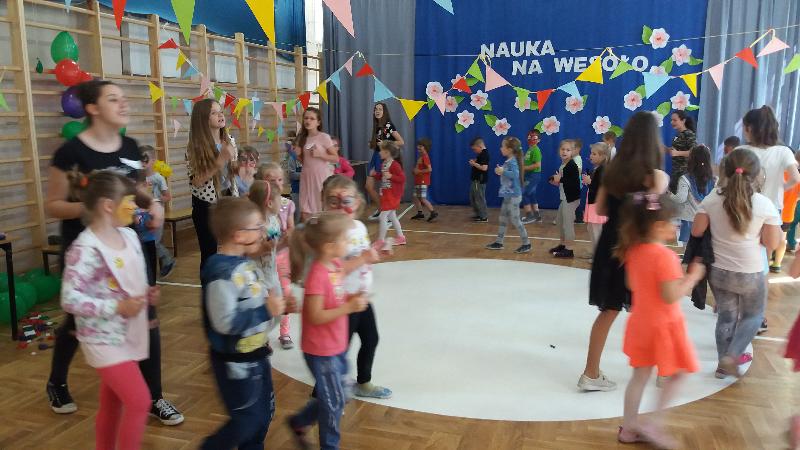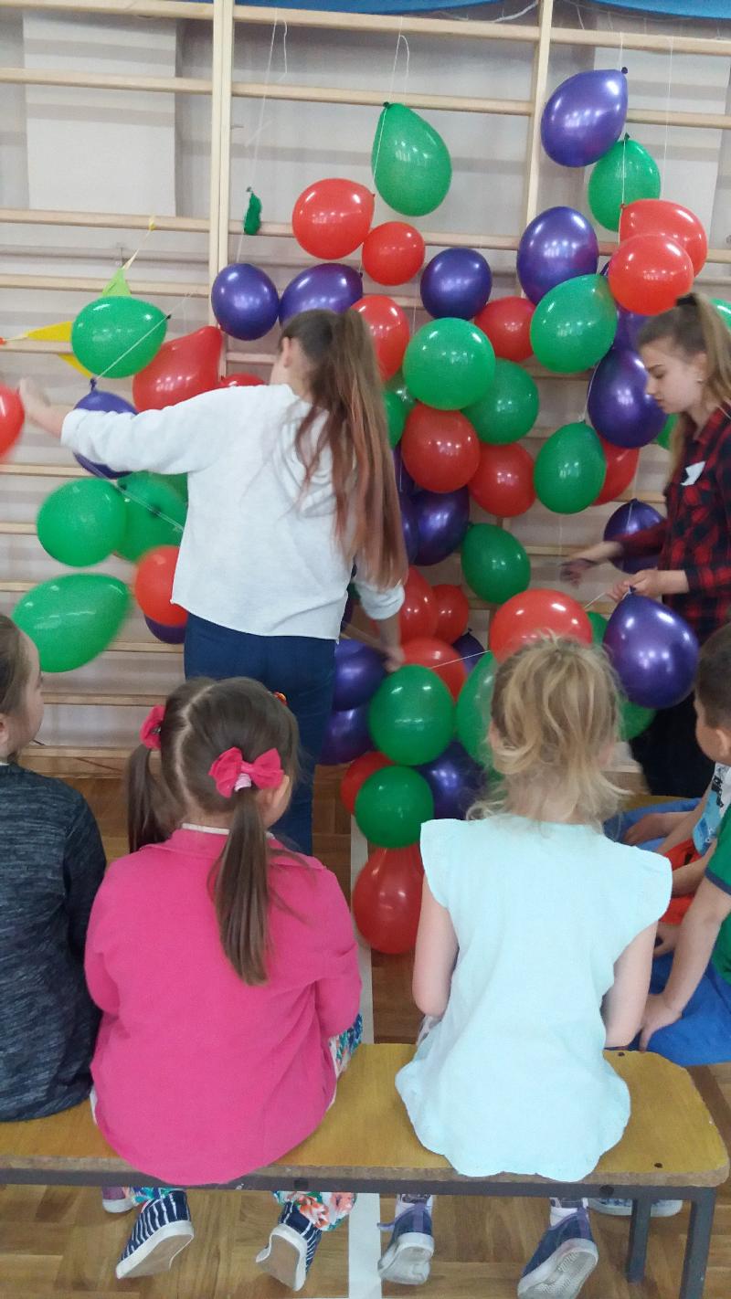 W ramach projektu ,, Pierwsze Kroki Wolontariuszy" organizowanym przez stowarzyszenie ,,Tutaj Teraz", mieliśmy zadanie zorganizowania projektu społecznego. Nasza grupa młodych wolontariuszy, której opiekunem jest pani Małgosia Pawłowska postawiła na ,,Dzień Nauki na Wesoło", który zorganizowaliśmy dla zerówek i pięciolatków. Zabawa polegała na sześciu stacjach, które dzieci miały za zadanie pokonać. Czekały tam na nich m.in. tor przeszkód, rozpoznawanie owoców, zadania w balonikach i wiele innych. Dzieci miały także możliwość pomalowania twarzy. Na zakończenie odbył się taniec integracyjny. Każde dziecko wyszło z zabawy z drobnymi upominkami oraz uśmiechem na twarzy. Mamy nadzieję, że nasz projekt sprawił naszym młodszym kolegom mnóstwo radości.