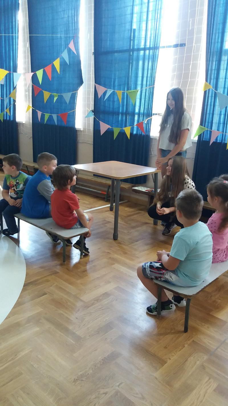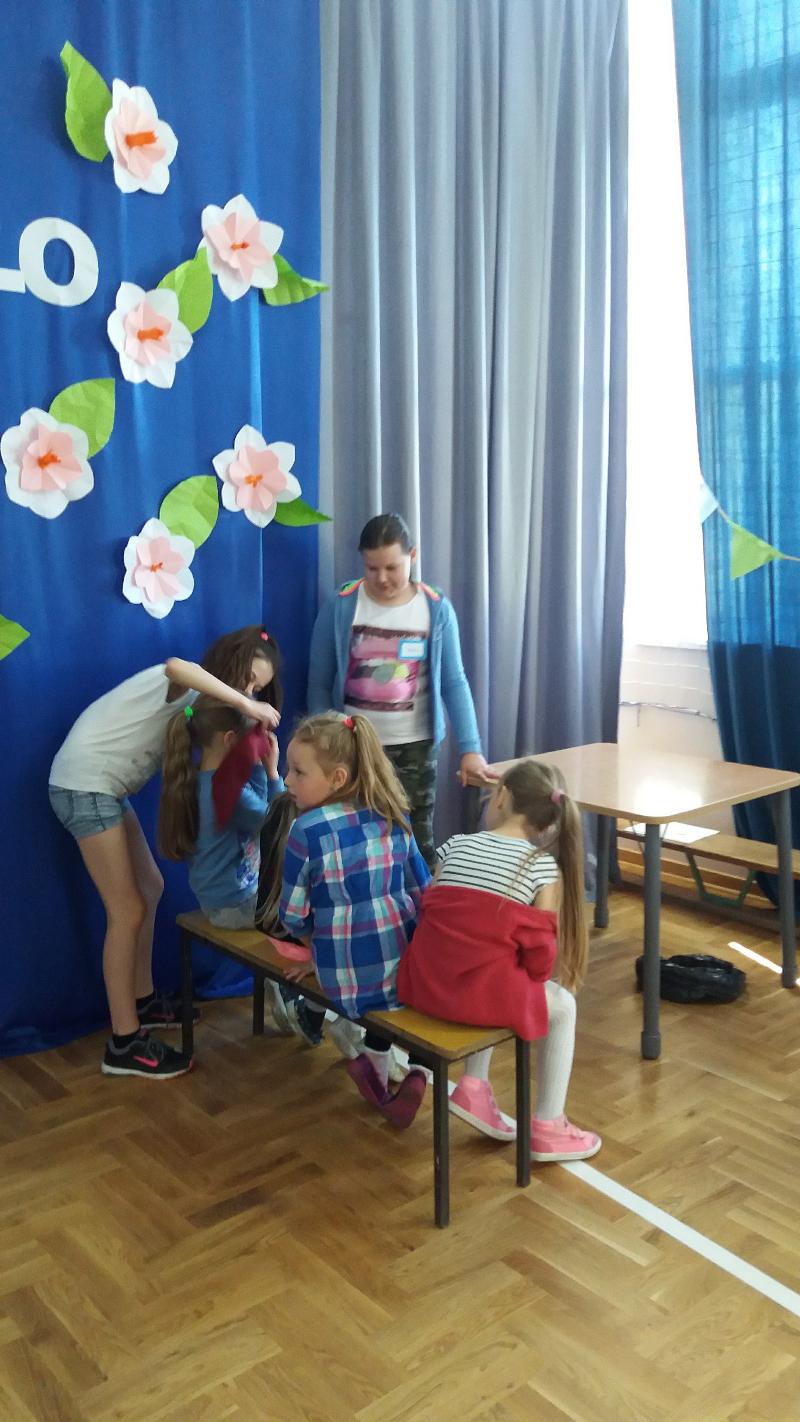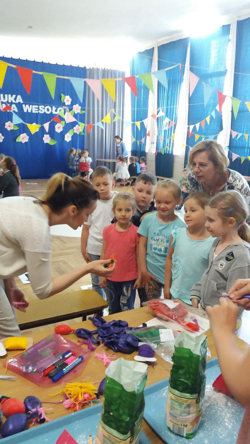 W ramach projektu ,, Pierwsze Kroki Wolontariuszy" organizowanym przez stowarzyszenie ,,Tutaj Teraz", mieliśmy zadanie zorganizowania projektu społecznego. Nasza grupa młodych wolontariuszy, której opiekunem jest pani Małgosia Pawłowska postawiła na ,,Dzień Nauki na Wesoło", który zorganizowaliśmy dla zerówek i pięciolatków. Zabawa polegała na sześciu stacjach, które dzieci miały za zadanie pokonać. Czekały tam na nich m.in. tor przeszkód, rozpoznawanie owoców, zadania w balonikach i wiele innych. Dzieci miały także możliwość pomalowania twarzy. Na zakończenie odbył się taniec integracyjny. Każde dziecko wyszło z zabawy z drobnymi upominkami oraz uśmiechem na twarzy. Mamy nadzieję, że nasz projekt sprawił naszym młodszym kolegom mnóstwo radości.