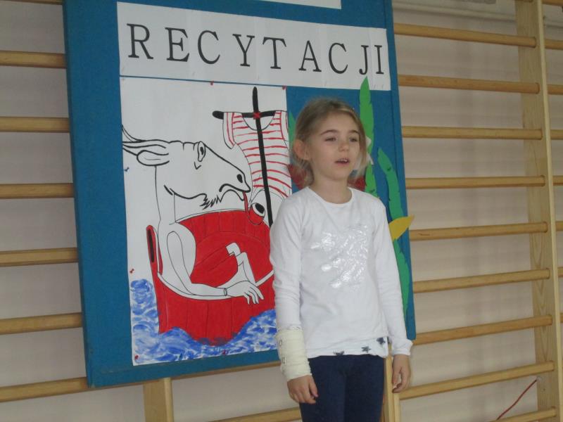 Pozostałe dzieci z klas II i III słuchały pięknej recytacji i kibicowały kolegom.