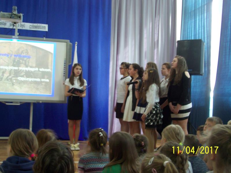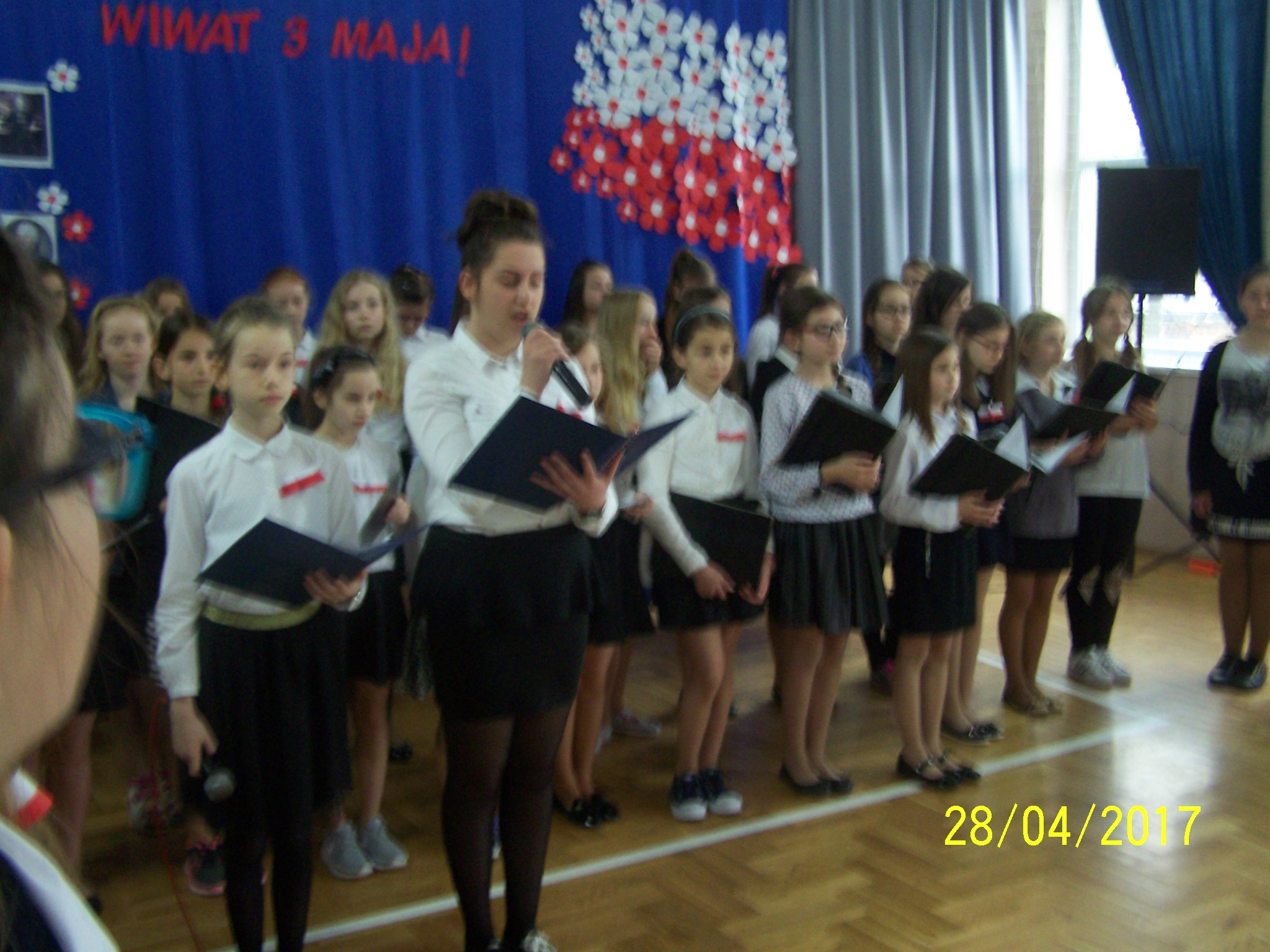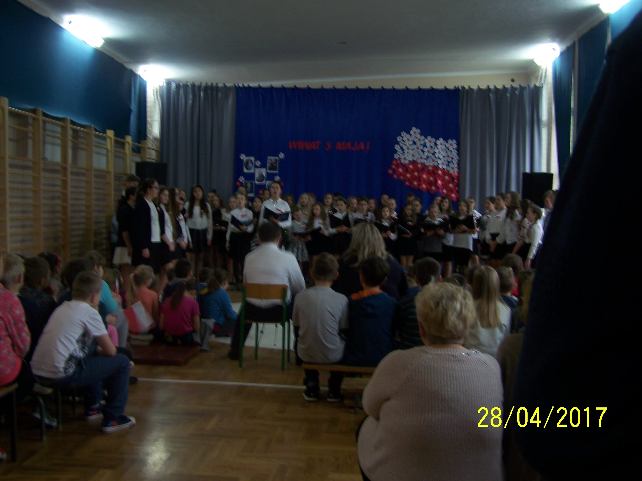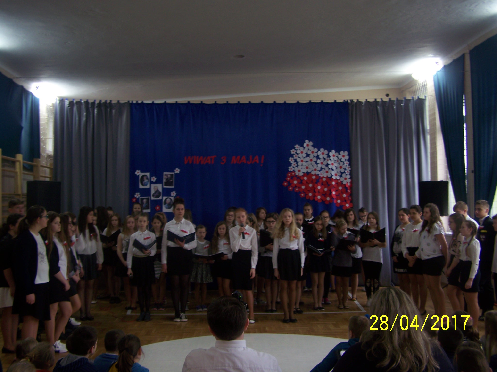 Akademia rozpoczęła się od wprowadzenia sztandaru i odśpiewania hymnu państwowego. Spektakl przeniósł wszystkich w odległą przeszłość. Nie zabrakło pieśni patriotycznych w wykonaniu chóru szkolnego. Część artystyczna zmusiła wszystkich do refleksji i zadumy nad tym, jaką wartość ma dziś patriotyzm i uświadomiła zebranym, że dzień 3 maja 1791 roku odegrał ogromną rolę w historii Polski.