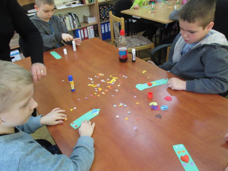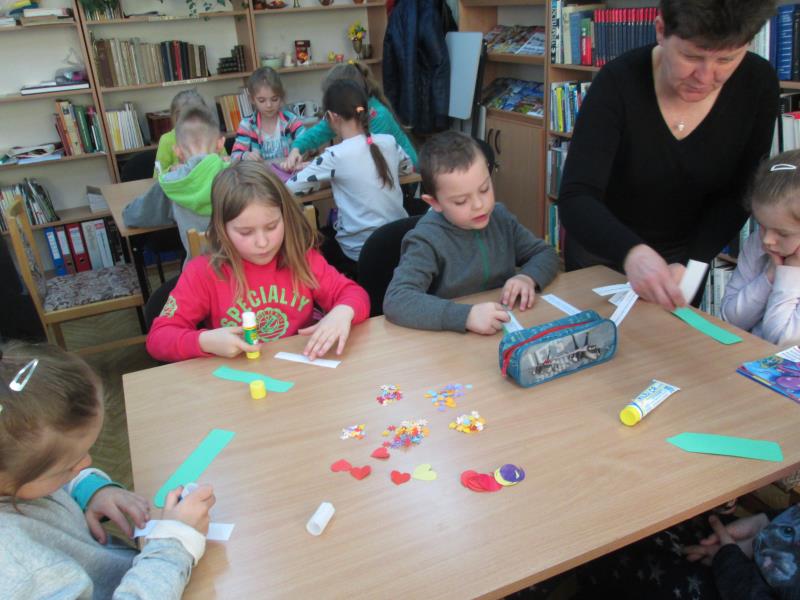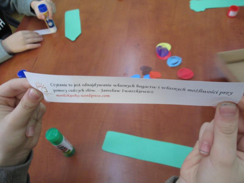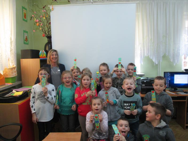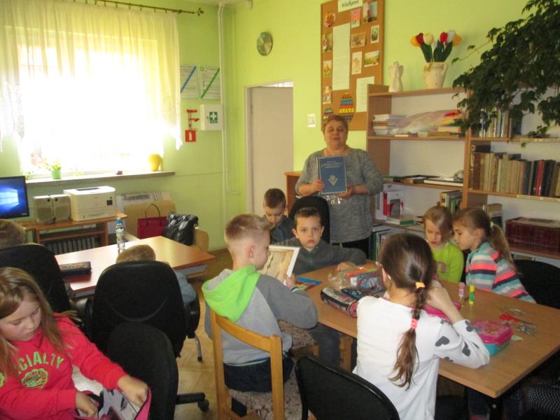 Dnia 23 kwietnia przypada największe święto czytelników obchodzone na całym świecie- Światowy Dzień Książki i Praw Autorskich. Z tej okazji Miejsko- Gminna Biblioteka Publiczna w Mordach postanowiła uczcić wyjątkowo ten dzień zapraszając uczniów klasy II C wraz z wychowawcą na lekcję biblioteczną. Uczniowie zostali zaproszeni dn. 24.04.2017r. na spotkanie w trakcie, którego dowiedzieli się „ Jak powstaje książka”. Z wykorzystaniem prezentacji multimedialnej bibliotekarka opowiedziała dzieciom na czym dawno pisano książki, jak dawniej wyglądały książki, o drodze jaką musi przebyć rękopis zanim stanie się książką, trafi na półkę i będzie można ją przeczytać. Starając się rozbudzić zainteresowania czytelnicze, dzieci wysłuchały wiersza Ireny Ostaszyk „ Książka”, która prosi o szacunek biorąc ją do ręki. Samodzielnie wykonały zakładki , a na każdej z nich znalazł się cytat o książce. W zabawie literackiej uczniowie mogli wykazać się zdolnościami plastycznymi wykonując własną okładkę do bajki pt. „ O mądrej dziewczynie” ze zbioru bajek Ireny Ostaszyk „ Babcia mi opowiadała”. Niezwykłe spotkanie przebiegło w miłej , serdecznej i radosnej atmosferze ,w której wszyscy wspaniale się bawili w towarzystwie książek.