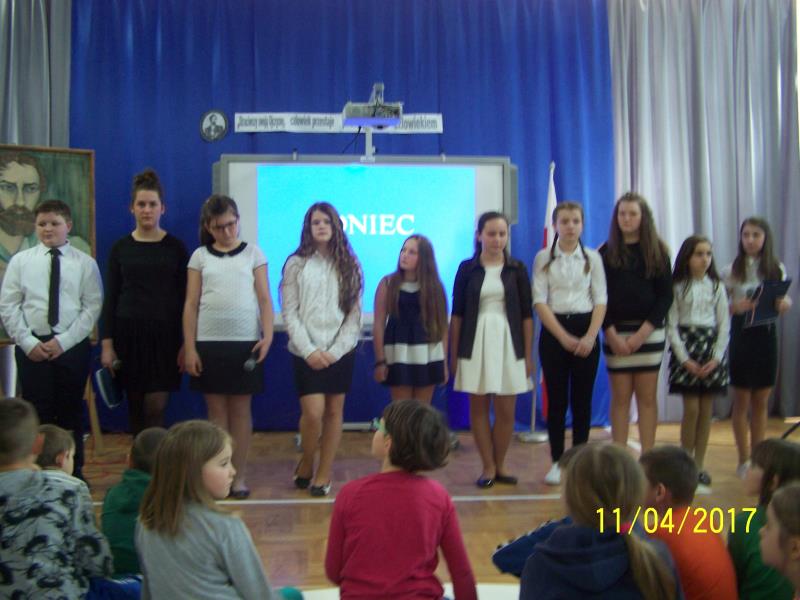 Na zakończenie uroczystości wicedyrektor szkoły Jerzy Borowski złożył serdeczne podziękowania dzieciom i nauczycielom: pp. Agnieszce Genei, Elżbiecie Czarkowskiej i Jackowi Zdanowskiemu za zaangażowanie w przygotowanie tak pięknej, pełnej patriotyzmu lekcji historii.