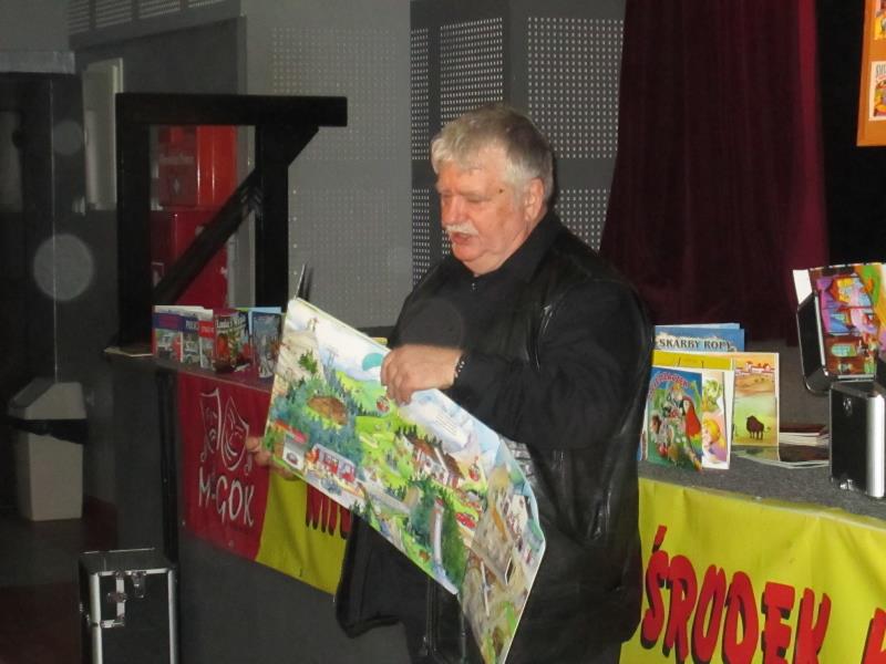 Dnia 22 marca br. na zaproszenie Miejsko- Gminnej Biblioteki Publicznej w Mordach, uczniowie klasy I i klas II wraz z wychowawcami wzięli udział w spotkaniu z Wiesławem Drabikiem, autorem ponad 150 bajek dla najmłodszych. Mistrz rymowania Pisarz Wiesław Drabik czytał dzieciom i uczestnikom bajeczki m.in: „Bajka o Smoku i Kraku i o tym jak powstał Kraków”, „Awantura na podwórku”, „Łakomczucha”, ”Magiczne cyferki”, ”Magiczne literki”, ”Na pomoc”, ”Odjazdowy zwierzyniec”, ”Mundial na pastwiskach”, ”Bocianek Janek”, „Kocie łakocie”- pełne humoru, chętnie czytane i oglądane przez najmłodszych. Jest autorem krótkich form, których kilka umieszczono w zbiorze „ 100 wierszy na każdą okazję”, a wiersz „ List do Mikołaja” znalazł się w podręczniku do 2 klasy ( wyd. MEN, 2013). Pisarz żonglował żywym słowem wprawiając wszystkich w dobry humor, cytował śmieszne, rymowane zagadki. Nie obyło się bez zabawy ćwiczącej spostrzegawczość. Gość spotkania nie szczędził nagród dla dzieci, które były bardzo aktywne. Drobne kolorowe naklejki, kalendarze i obrazki z książek, wszyscy skrupulatnie gromadzili w czasie spotkania. Żadne z dzieci nie wyszło ze spotkania bez drobnego upominku od autora, okraszonego autografem i salwą rymowanek związanych z imieniem dziecka.