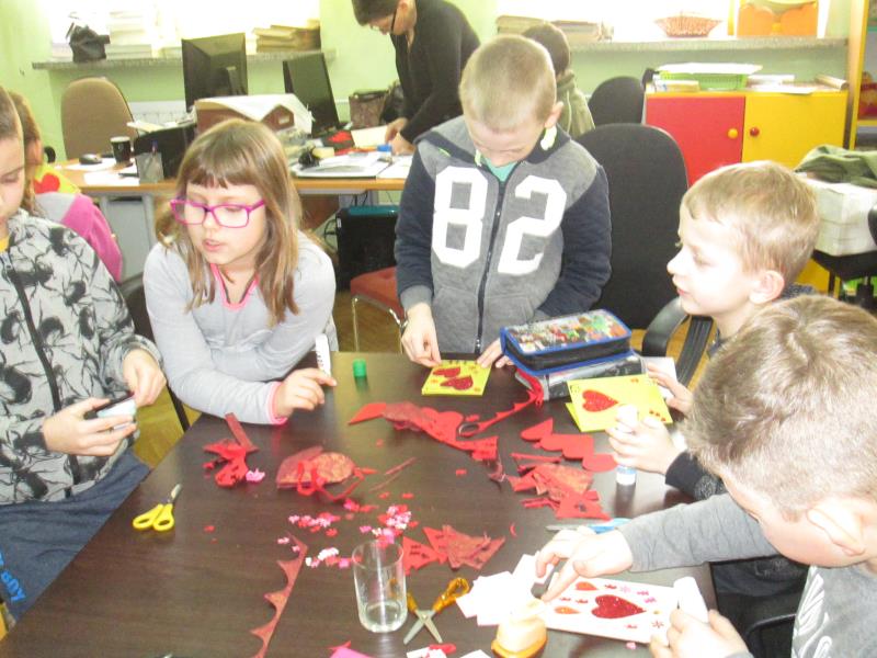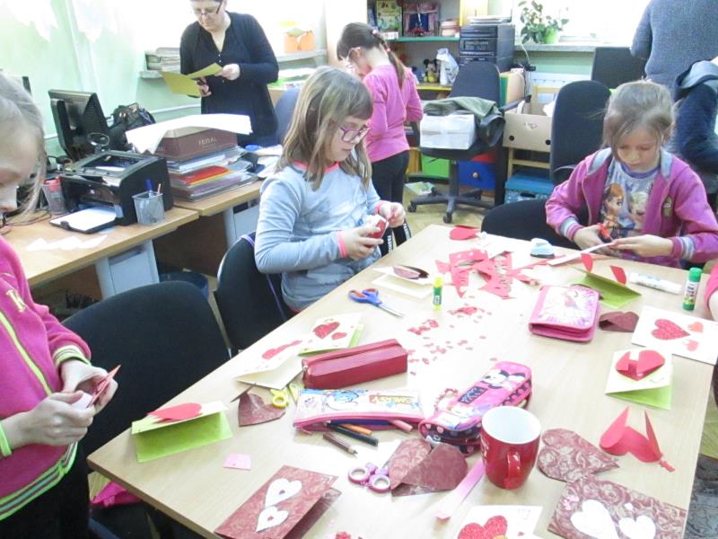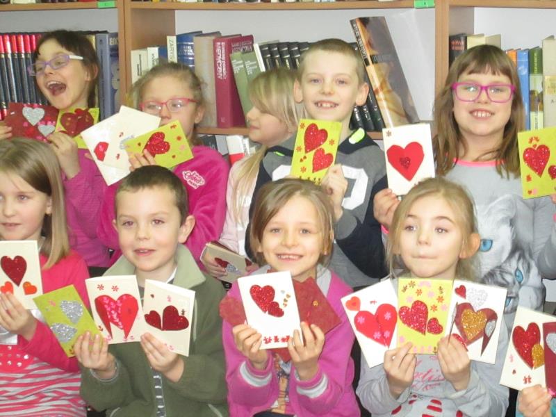 Jednym z najpopularniejszych walentynkowych zwyczajów, bez którego trudno sobie wyobrazić Dzień Zakochanych jest niewątpliwie podarowana kartka walentynkowa. Nie chodzi o gotową kartkę z wierszykiem kupioną w księgarni, ale prawdziwe małe wyznanie wykonane samodzielnie. Można użyć papieru nożyczek, kleju, posłużyć się komputerem i drukarką. Najlepszy pomysł? To taki mały gest, który nie musi oznaczać wielkich wydatków, a stać się wspaniałą okazją do zabawy dla każdego z nas. Ten zbliżający się dzień był inspiracją dla uczniów klasy II C, którzy pod opieką wychowawcy dnia 06.02.2017r. na zaproszenie Miejsko- Gminnej Biblioteki Publicznej w Mordach uczestniczyli w zajęciach plastycznych tworząc i komponując kartki walentynkowe. Nie chodziło o coś potrzebnego czy praktycznego- raczej o powód do uśmiechu w tworzeniu czegoś co wyrazi ich miłość, sympatię i przyjaźń do bliskich im osób.