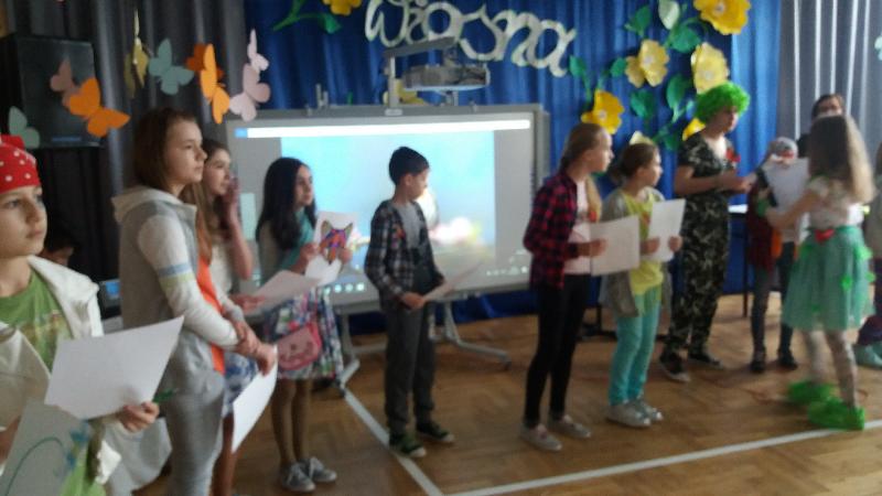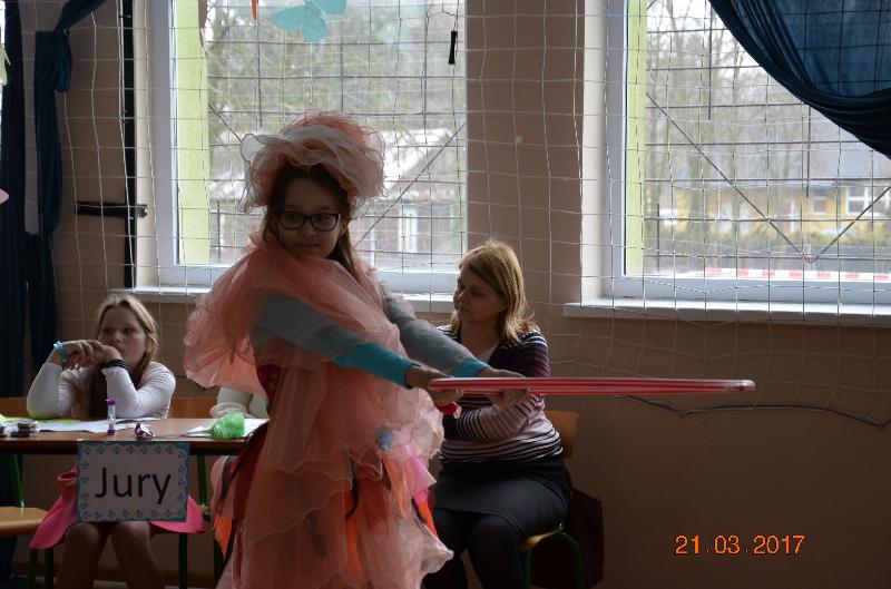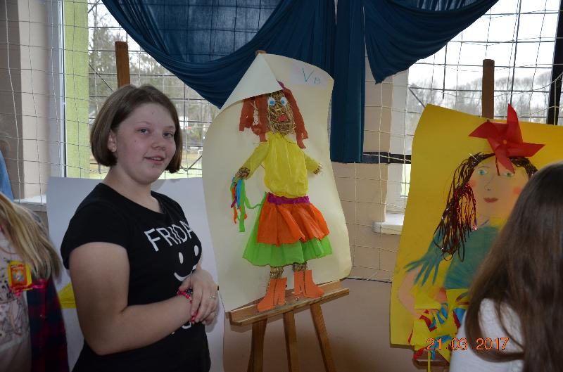 Pierwszym zadaniem było wykonanie dużego, przestrzennego kwiatu. Kolejnym – wykonanie portretu marzanny. Choć portrety wszystkich klas były wyjątkowe, nasza Wiosna poczuła się nieswojo, marzanna jest przeciwieństwem wiosny, symbolem zimy. Z pomocą przyszła publiczność, która krótkim wierszem wygoniła marzanny z naszej szkoły.