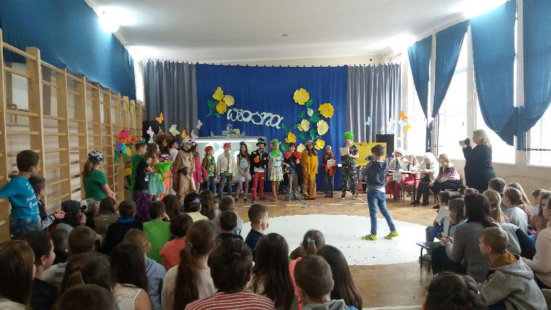 Od samego początku zabawy nie brakowało emocji. Przepiękna, długo oczekiwana Wiosna (w tej roli Zuzanna Miłkowska), tanecznym krokiem wkroczyła do ukwieconej sali gimnastycznej by przywitać naszych uczniów i przypatrywać się ich zmaganiom.