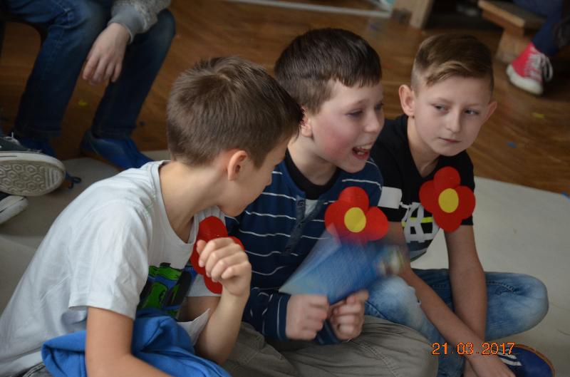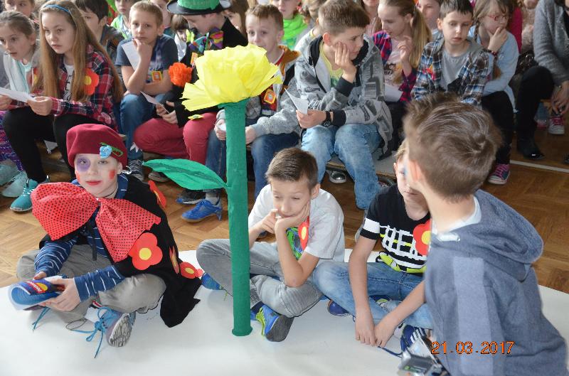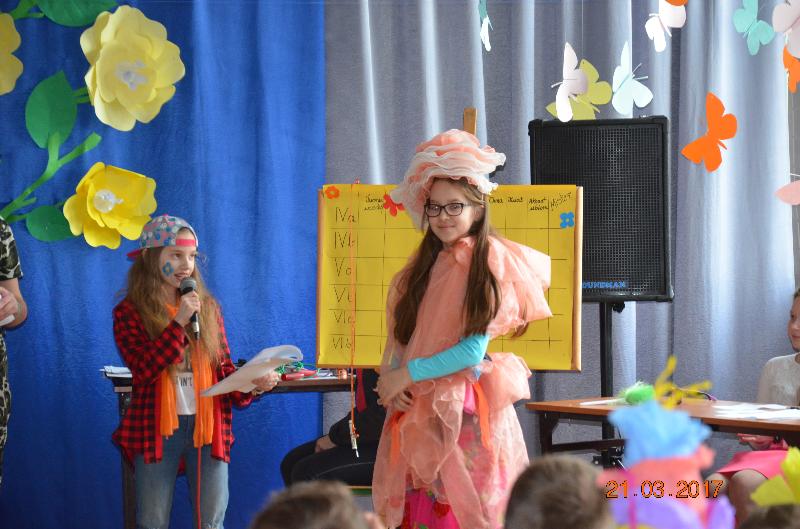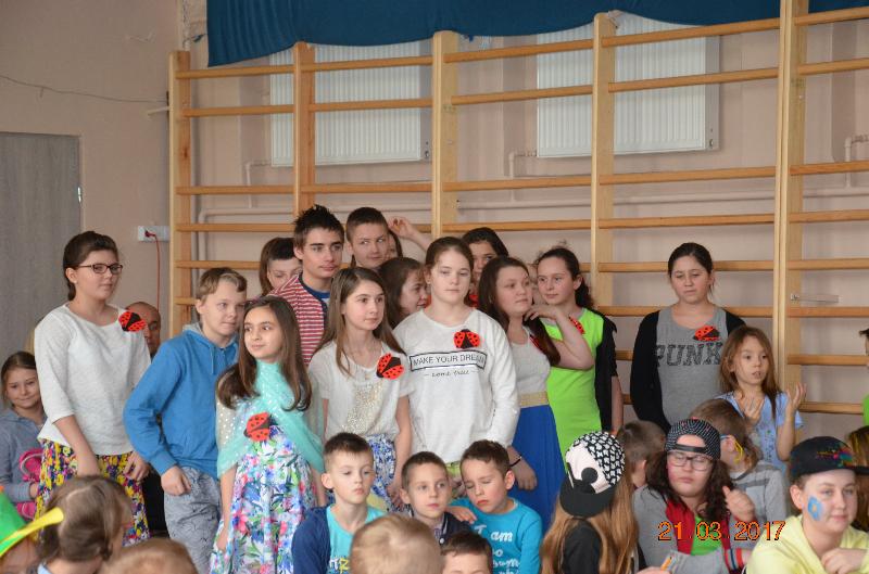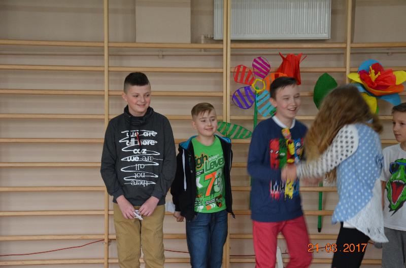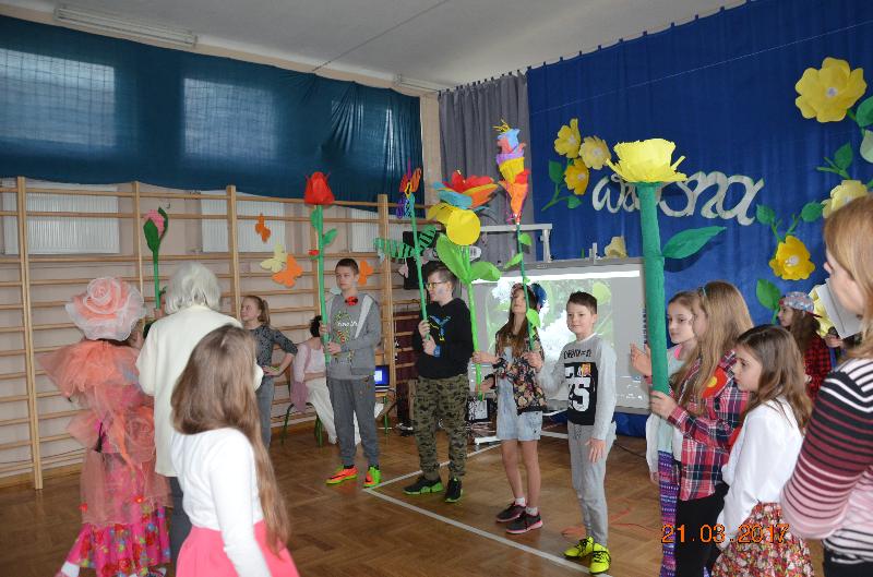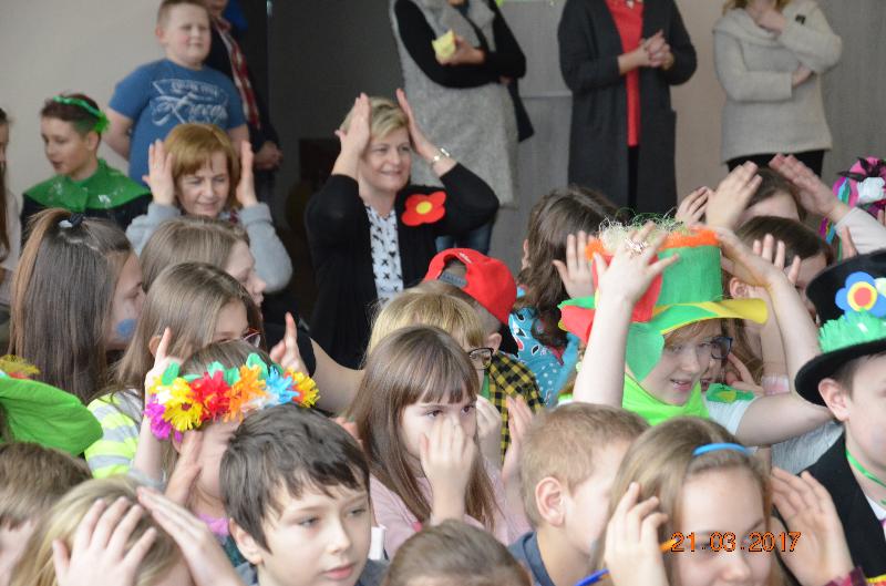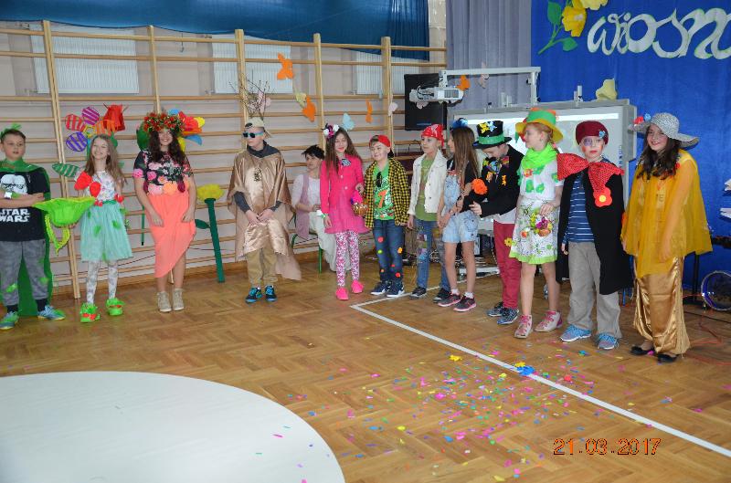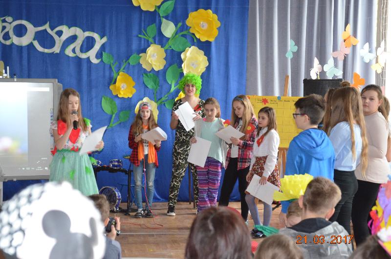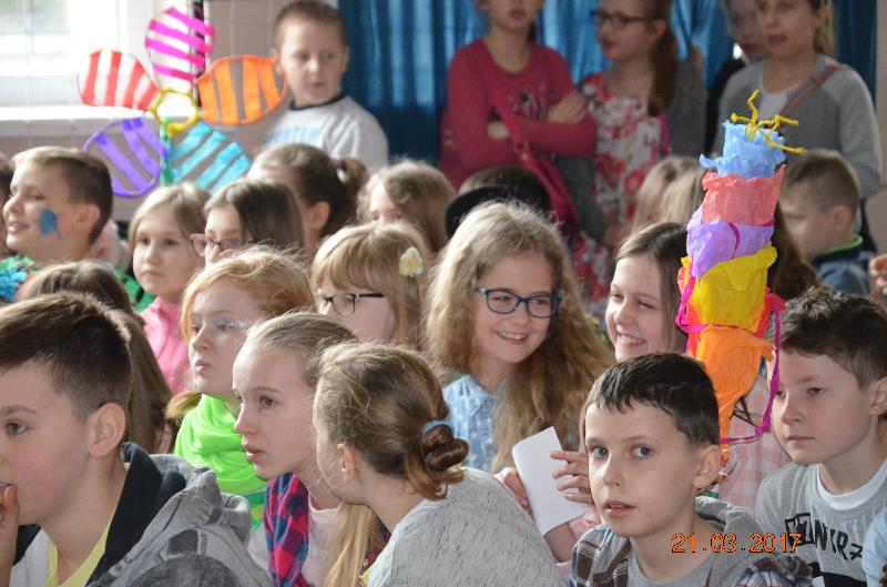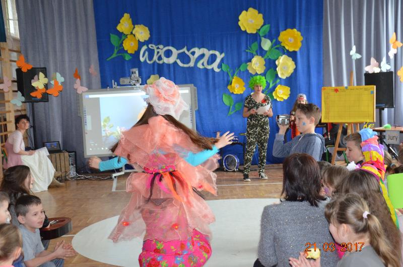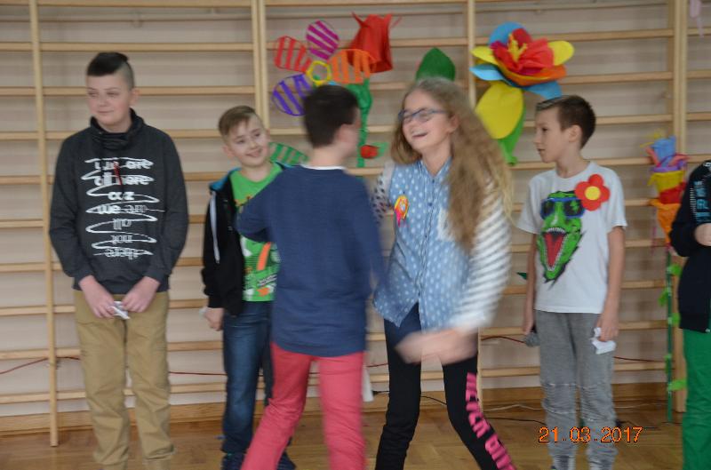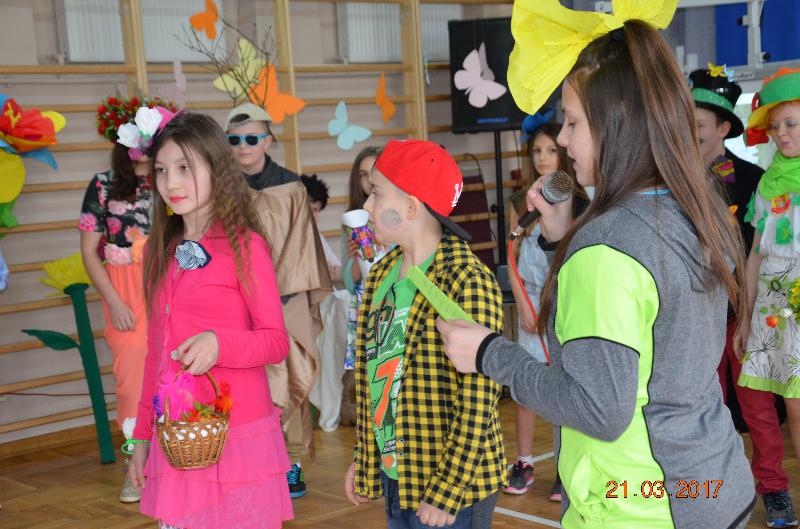 21 marca to dzień szczególnie wyczekiwany przez uczniów. W szkole tradycyjnie żegna się wtedy zimę a wita wiosnę. Uczniowie naszej szkoły działający w Samorządzie Uczniowskim dołożyli wszelkich starań by ten dzień był bardzo kolorowy i radosny. Zaplanowano zabawę przez rywalizację w wiosennym turnieju z wieloma ciekawymi konkurencjami. Całą imprezę prowadziły przewodniczące SU, niezawodne Kinga Teodorczuk i Julia Wielogórska. Zmagania klas oceniało jury w składzie: p. Jolanta Hoduń, p. Elżbieta Smuniewska oraz przedstawicielka SU, Natalia Ogrodniczuk.