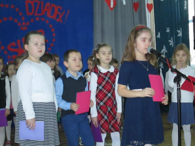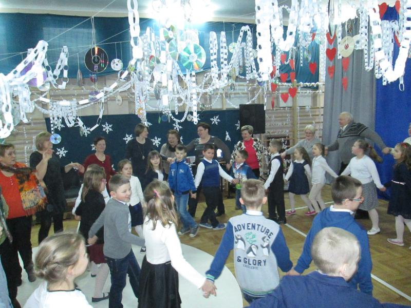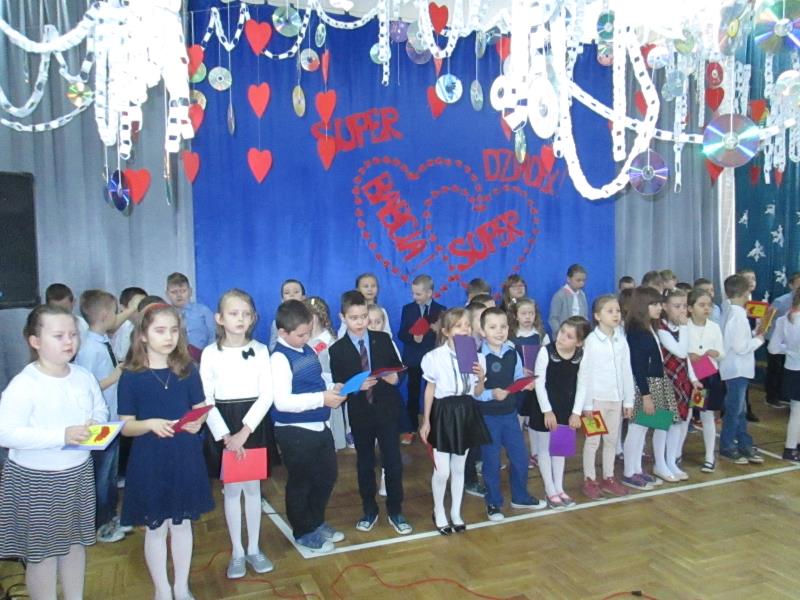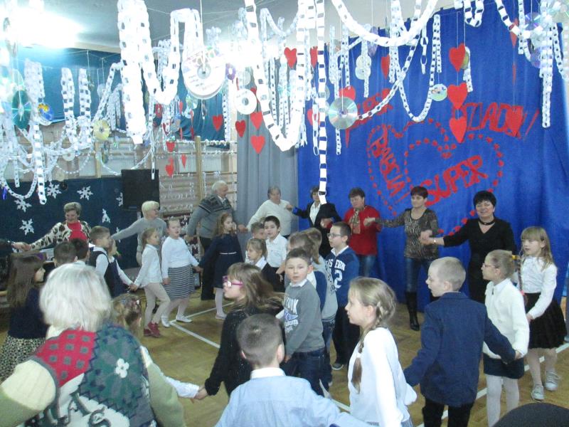 W styczniu babcie i dziadkowie obchodzą swoje wielkie święto. Jest za co dziękować naszym babciom i dziadkom. To właśnie dziadkowie otulają wnuki ciepłem i troską. Cierpliwie uczą najpierw samodzielności, potem wrażliwości i odpowiedzialności. Zawsze mają czas dla wnuków i są w każdej potrzebie. Nie wolno o nich zapominać, a życzenia to obowiązek każdego wnuczka i każdej wnusi. Chcąc wyrazić swoje podziękowanie dla babcinej miłości i dziadkowym oddaniu, uczniowie klas drugich przygotowali uroczystą akademię z okazji Dnia Babci i Dziadka. Uroczystość otworzył pan Dyrektor Jerzy Borowski, który powitał przybyłych gości, złożył życzenia i zaprosił w imieniu pań wychowawczyń: Jolanty Kobak, Elżbiety Wielogórskiej i Renaty Teodorczuk, które przygotowały montaż słowno- muzyczny na występy uczniów i słodki poczęstunek. Piosenki, wierszyki , laurki dostarczyły dziadkom mnóstwo pozytywnych emocji i wzruszeń, a swoje podziękowanie wyrazili obsypując wnuki deszczem cukierków. Wspólna zabawa z dziadkami zakończyła wspaniałą uroczystość.