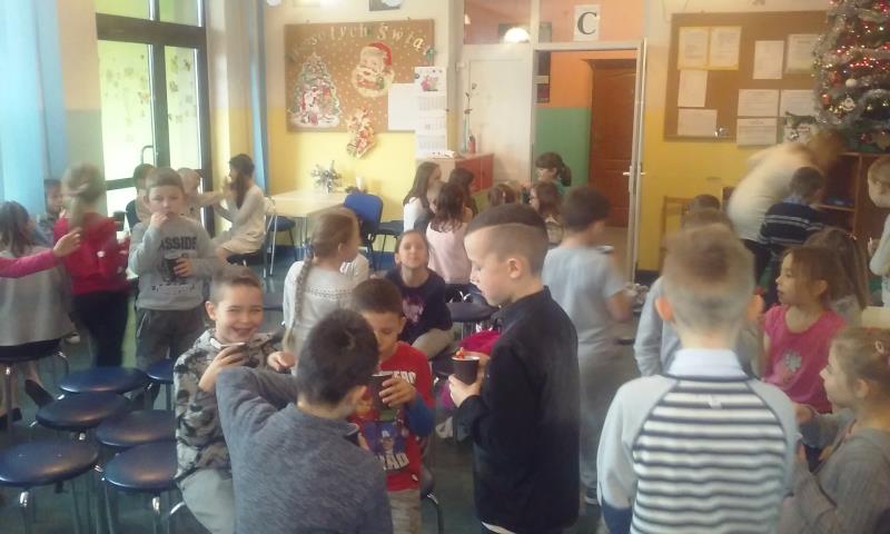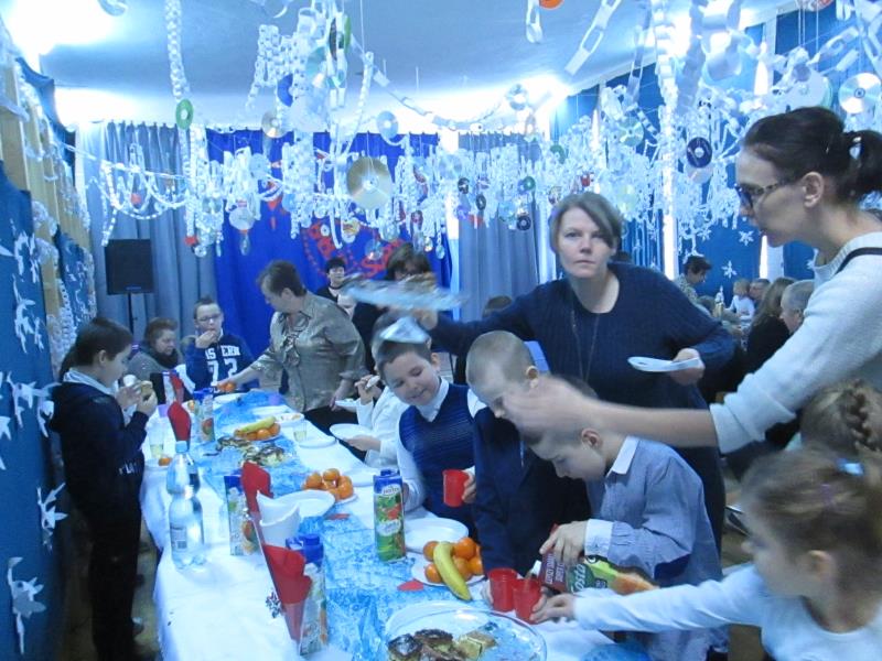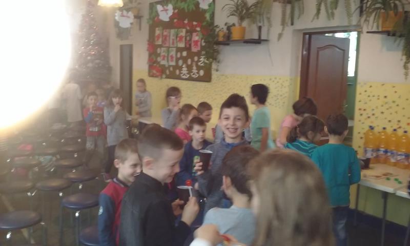 Tuż przed przerwą świąteczną dnia 21.12.2016 odbyło się w świetlicy spotkanie wigilijne z wychowankami. Montaż słowno-muzyczny przygotowała Pani Katarzyna Malińska. Po wspólnym odśpiewaniu kolęd nastąpiła najbardziej wyczekiwana przez uczniów część - poczęstunek. Dzięki przedsiębiorczości Pani intendentki i hojności sponsorów ("IBIS" z Białej Podlaskiej, "MAS-POL z Kałuszyna i Cukierni "JAN" z Mordów) stoły uginały się od owoców i słodyczy.Radości było co niemiara.