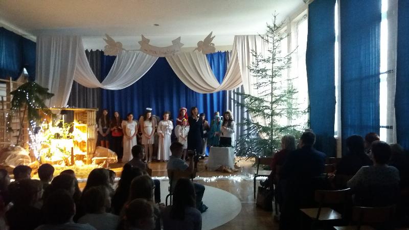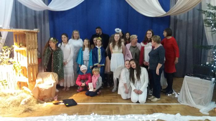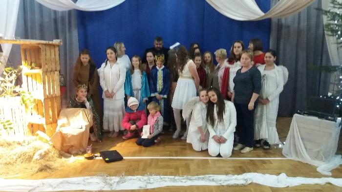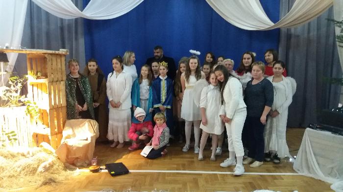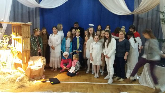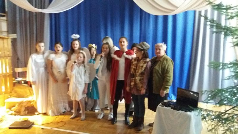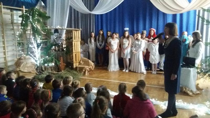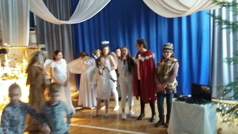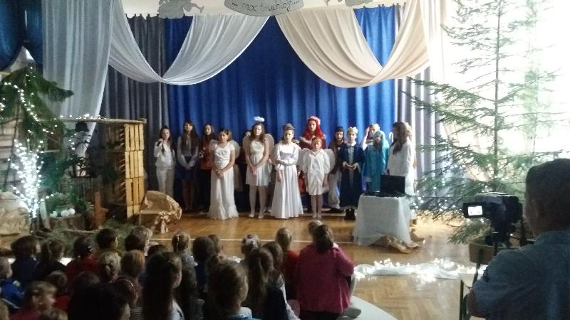 Jasełka, w wykonaniu uczniów klas szóstych, przygotowane zostały pod kierunkiem p. Ewy JAROCKIEJ – szkolnego pedagoga i p. Barbary ZALEWSKIEJ – katechetki.