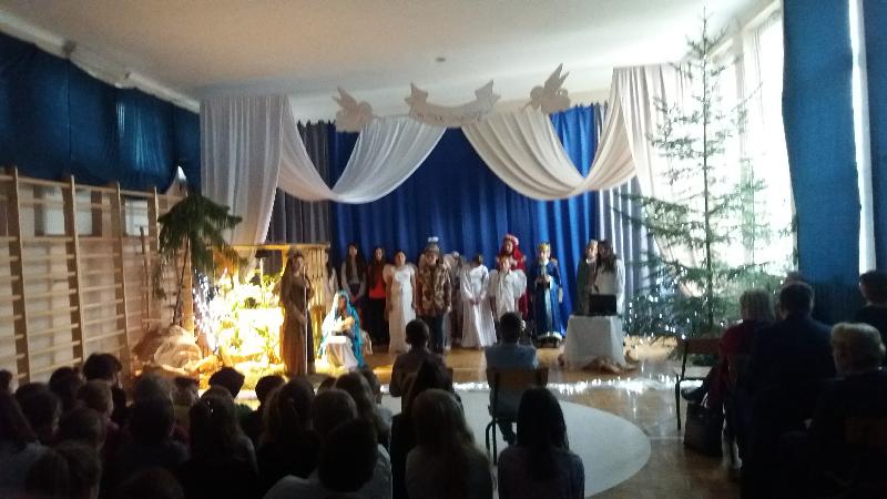 Zgodnie z wieloletnią tradycją dnia 20 grudnia 2016r. o godz. 9.30 szóstoklasiści zaprezentowali przedszkolakom i uczniom klas I – III naszej szkoły Jasełka. Ich treść łączyła historię Narodzenia Jezusa z obecną rzeczywistością. Młodzież przypomniała, że jak dawniej, tak i dziś ludzie szukają Boga. Przy choince i wśród złożonych darów – znalazły się laptopy – symbol współczesności.