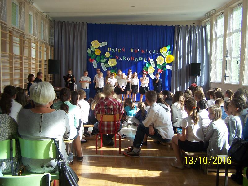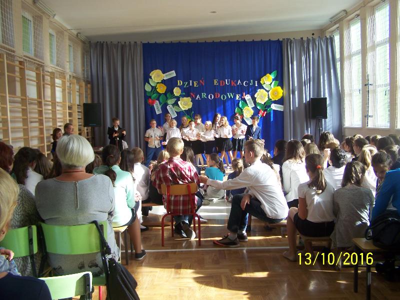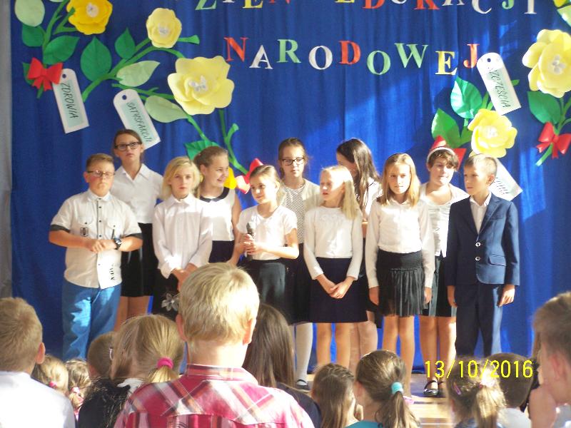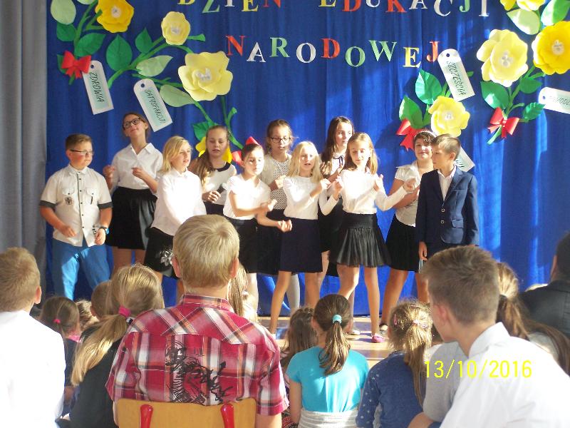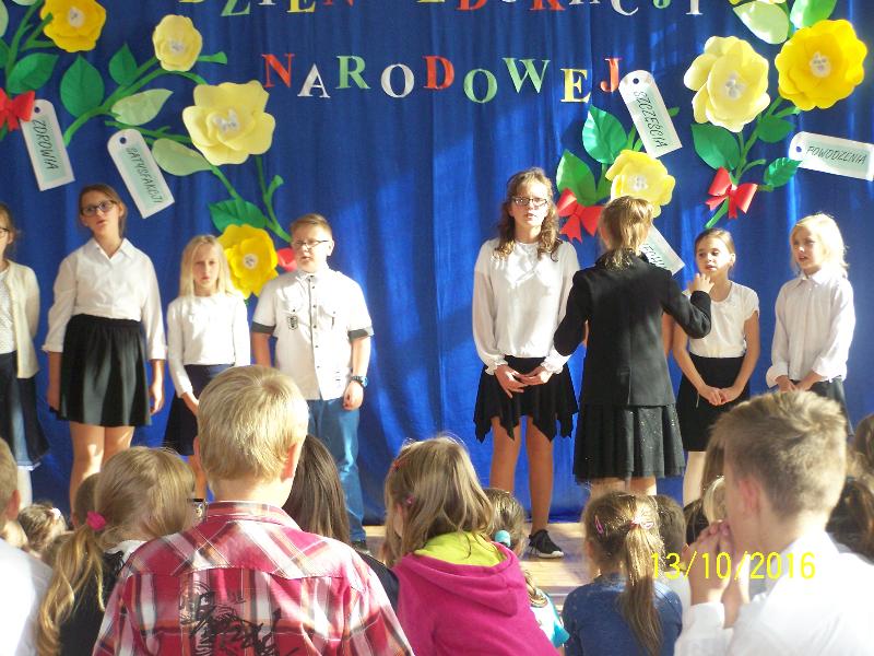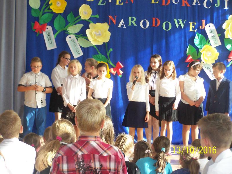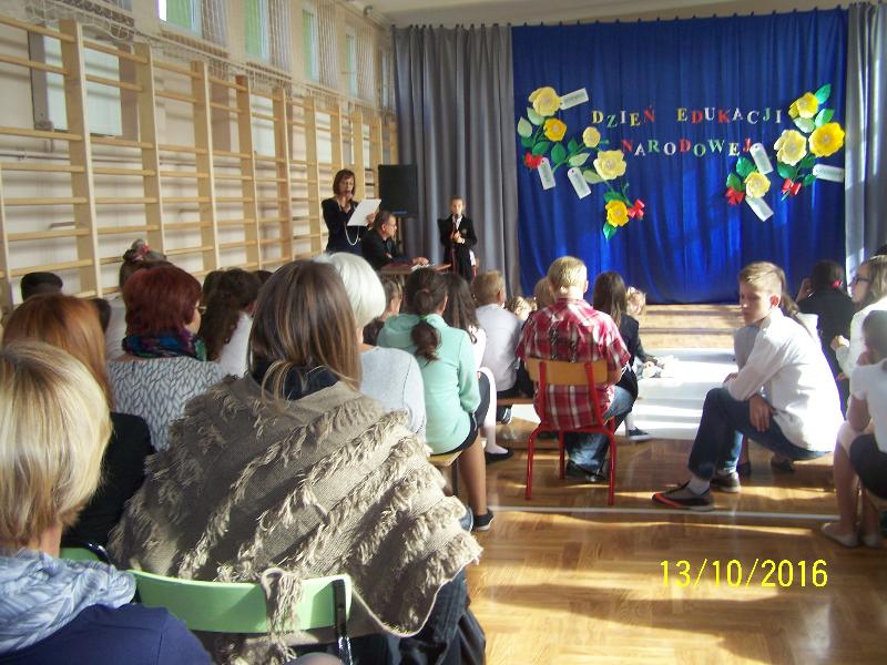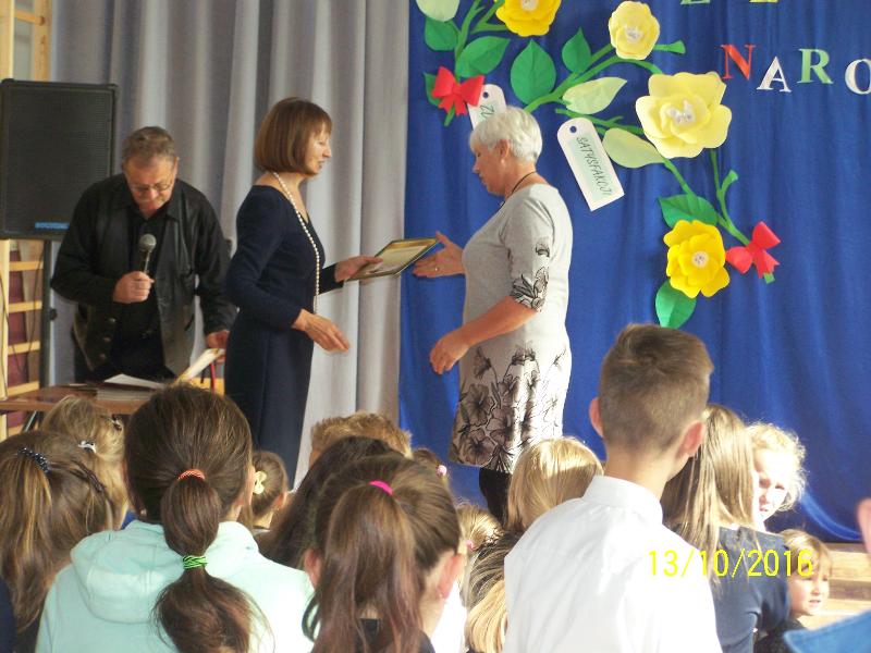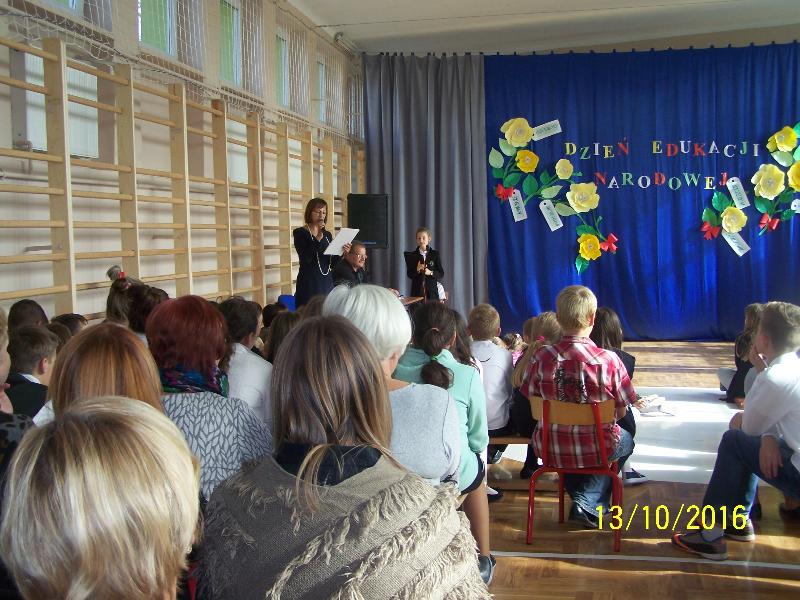 Trzynastego października – w przeddzień obchodzonego w całym Święta Edukacji Narodowej na cześć utworzenia w 1773 roku Komisji Edukacji Narodowej, w naszej szkole odbyła się uroczysta akademia. Otworzyła ją dyrektor Teresa Kozos dziękując wszystkim pracownikom Zespołu Oświatowego za pracę jaką wkładają, aby szkoła była miejscem do którego dzieci i młodzież przychodzą chętnie i z radością.