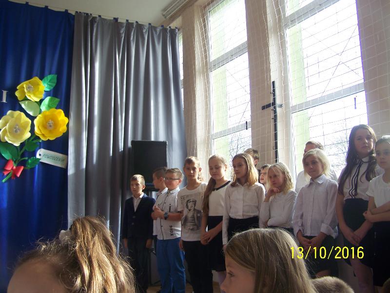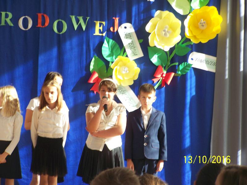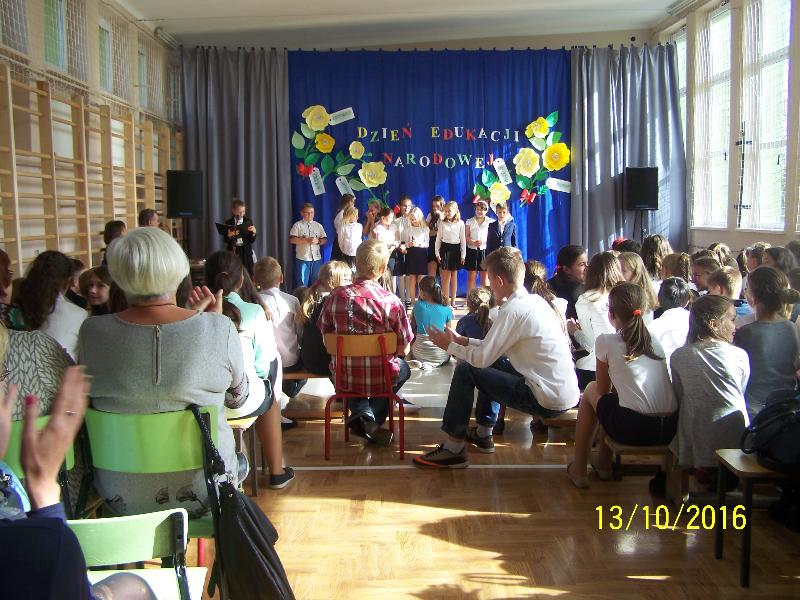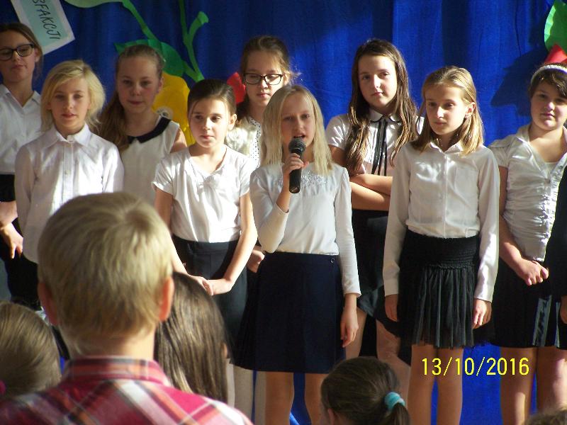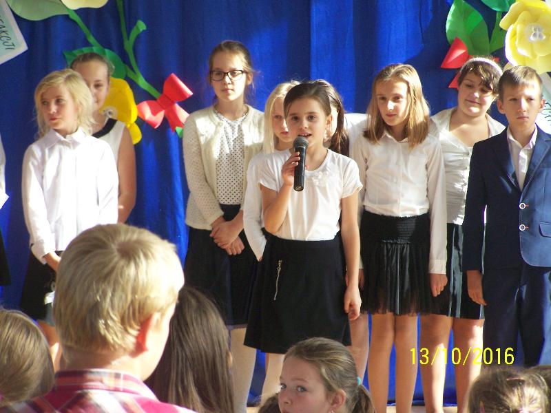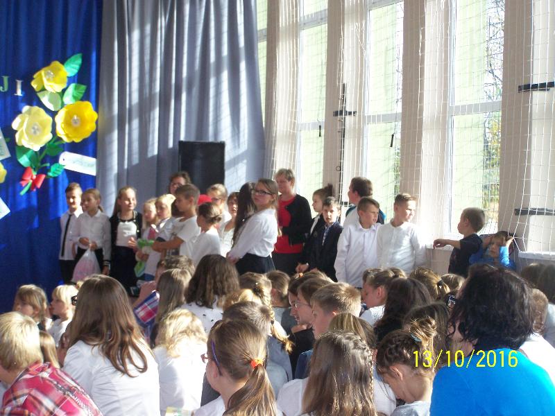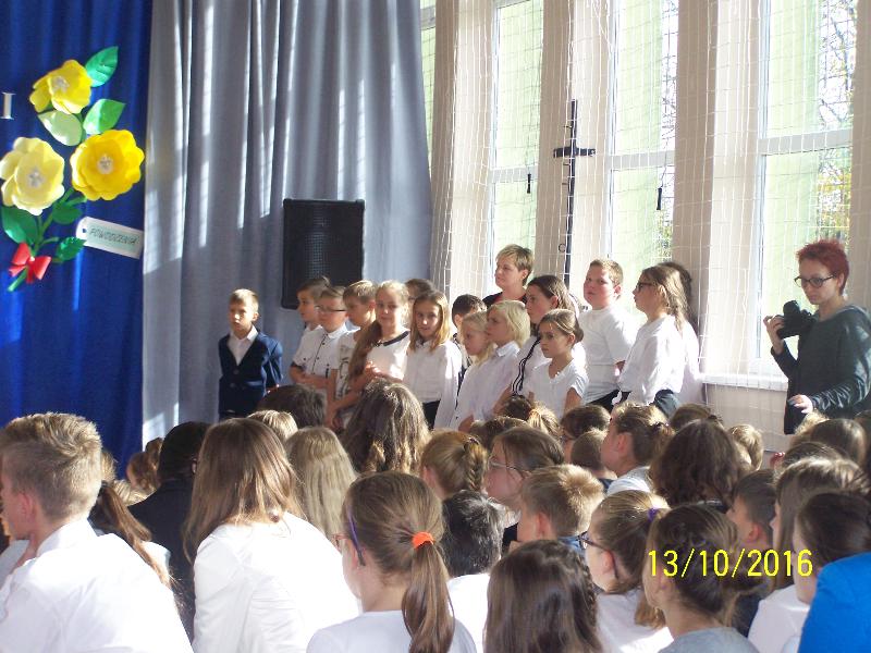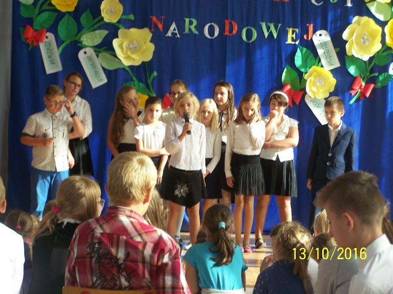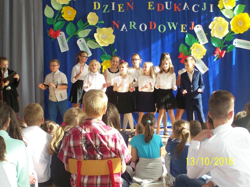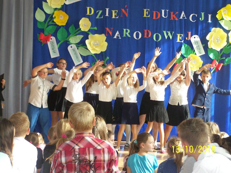 Trzynastego października – w przeddzień obchodzonego w całym Święta Edukacji Narodowej na cześć utworzenia w 1773 roku Komisji Edukacji Narodowej, w naszej szkole odbyła się uroczysta akademia. Otworzyła ją dyrektor Teresa Kozos dziękując wszystkim pracownikom Zespołu Oświatowego za pracę jaką wkładają, aby szkoła była miejscem do którego dzieci i młodzież przychodzą chętnie i z radością.