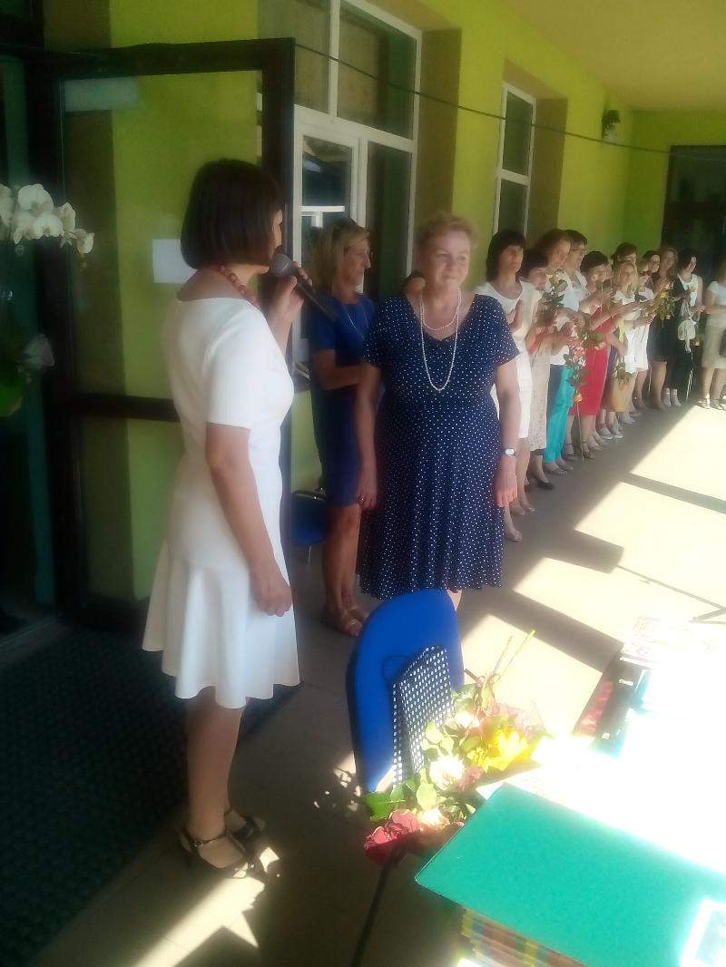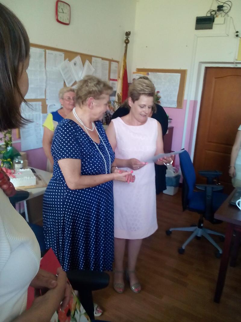 Pani dyrektor Kozos tak scharakteryzowała przechodzącą na emeryturę nauczycielkę: "Tytan pracy, solidności, odpowiedzialności, cierpliwości, nauczyciel z powołania, wzór do naśladowania. Serdeczna i szczera koleżanka. Z całego serca dziękujemy Ci za wszystko, co przez te lata pracy uczyniłaś dla nas, naszych uczniów, naszej szkoły i naszego środowiska.